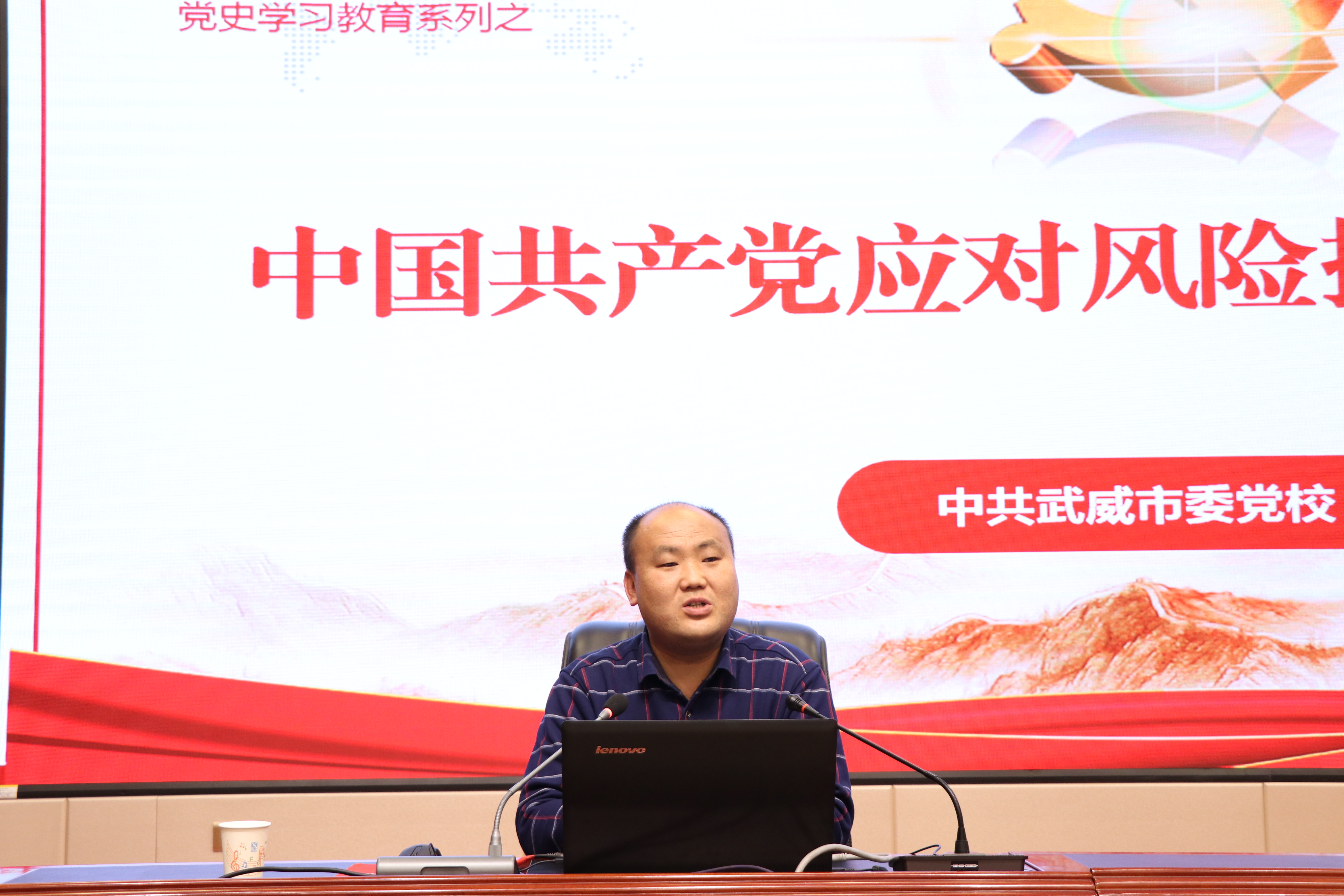 魏樂儀以《中國共產(chǎn)黨應(yīng)對風(fēng)險挑戰(zhàn)的經(jīng)驗啟示》為題,從強國征程、黨史開篇,百年大黨的深沉歷史自覺;危中尋機、困中破局,黨應(yīng)對風(fēng)險挑戰(zhàn)的歷史進(jìn)程;以史為鏡,以史明志,推進(jìn)偉大歷史偉業(yè)三個方面給參加讀書班的黨員干部和師生作了一場精彩的專題輔導(dǎo)。