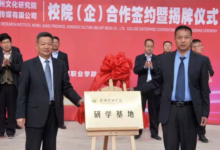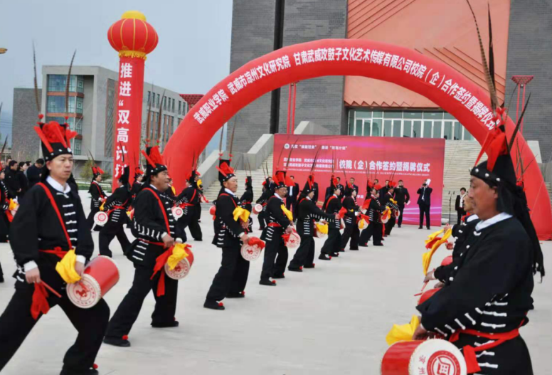 4月27日,學(xué)院與武威市涼州文化研究院、甘肅武威攻鼓子文化藝術(shù)傳媒有限公司“校(院)企戰(zhàn)略合作”簽約暨揭牌儀式在學(xué)院圖書(shū)館前廣場(chǎng)舉行。