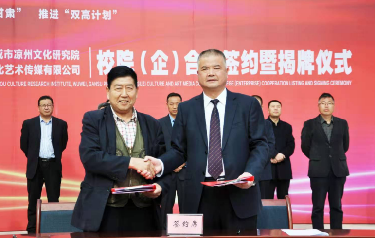 此次開(kāi)啟院、校、企合作,旨在充分發(fā)揮各自資源優(yōu)勢(shì),在研究、挖掘、整理、弘揚(yáng)涼州文化,加強(qiáng)在產(chǎn)、學(xué)、研、用方面的深入交流合作,在科學(xué)研究、文化傳播交流、課程開(kāi)發(fā)、實(shí)習(xí)基地建設(shè)、師資及人才培養(yǎng)、專(zhuān)業(yè)技能實(shí)訓(xùn)等高水平建設(shè)方面,豐富合作途徑、創(chuàng)新合作方法,進(jìn)行深度合作共建,對(duì)于“雙高”院校建設(shè)和地方文化事業(yè)蓬勃發(fā)展具有重要意義。