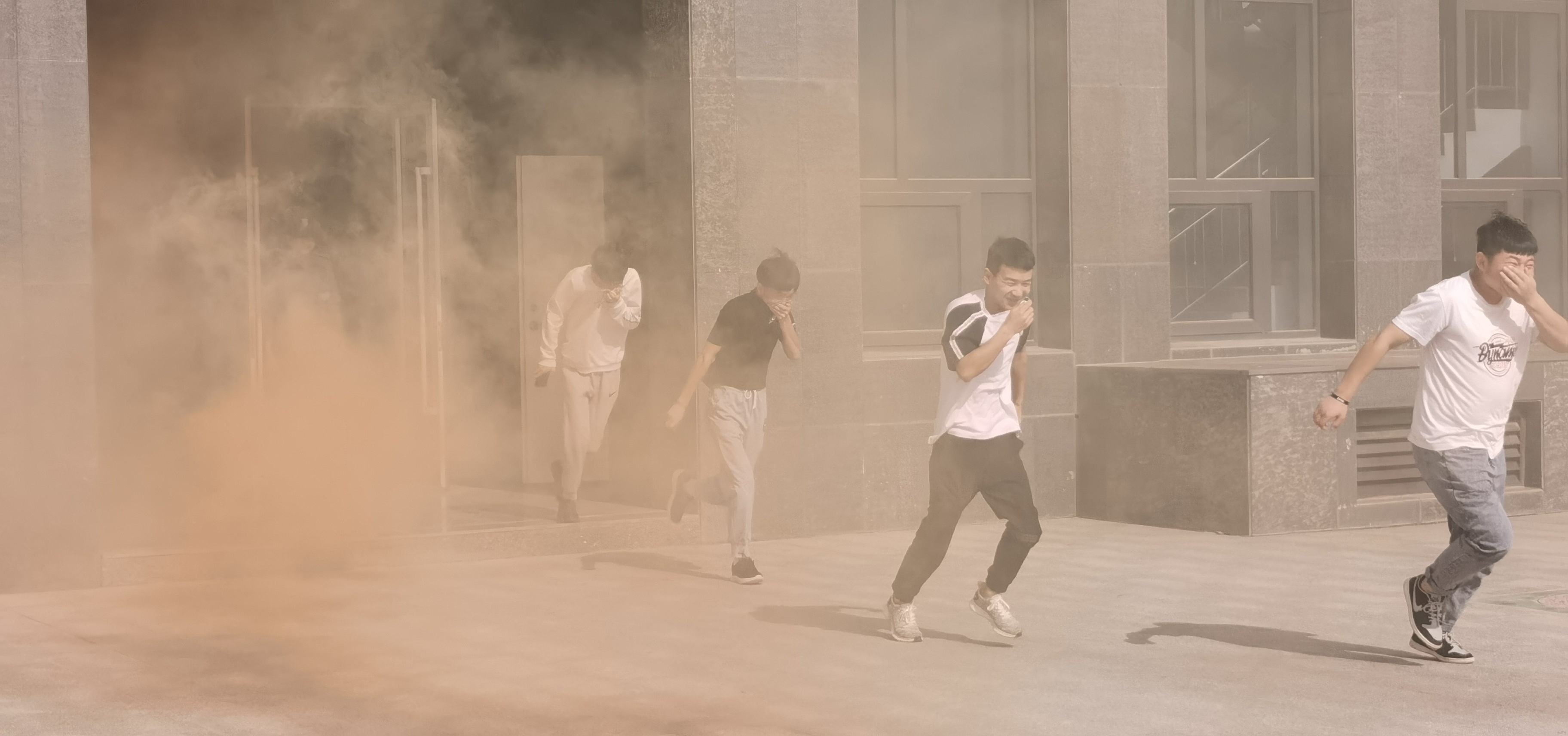 下午4點46分,疏散演練正式開始。隨著消防警報響起,各教學(xué)班上課教師立即停止上課組織學(xué)生疏散,學(xué)生用濕毛巾捂住口鼻,按照逃生路線有序疏散。在5分鐘內(nèi),8000多名參演師生全部撤離到安全地帶,演練取得圓滿成功。