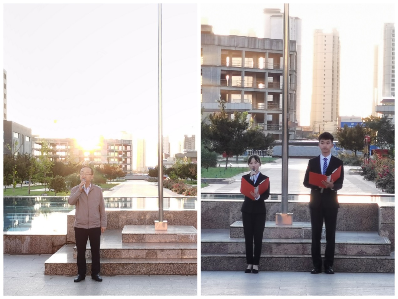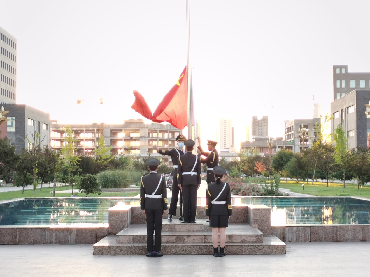 升旗儀式開始,全體肅立,在師生的注視中,國旗護(hù)衛(wèi)隊員,迎著朝陽,邁著鏗鏘有力的步伐來到國旗臺下,伴隨著莊嚴(yán)的《中華人民共和國國歌》,鮮艷的五星紅旗冉冉升起。升旗儀式結(jié)束后,2020級學(xué)生代表楊曉鵬、張鈺鈺進(jìn)行了國旗下演講,他們呼吁同學(xué)們在求學(xué)路上,不斷探索、樂學(xué)善思、德技并修、求知上進(jìn)、勤奮好學(xué),做一名洋溢青春活力、釋放青春激情、追逐青春夢想、健康向上的新時代大學(xué)生,發(fā)出“請黨放心、強(qiáng)國有我”的深情告白。