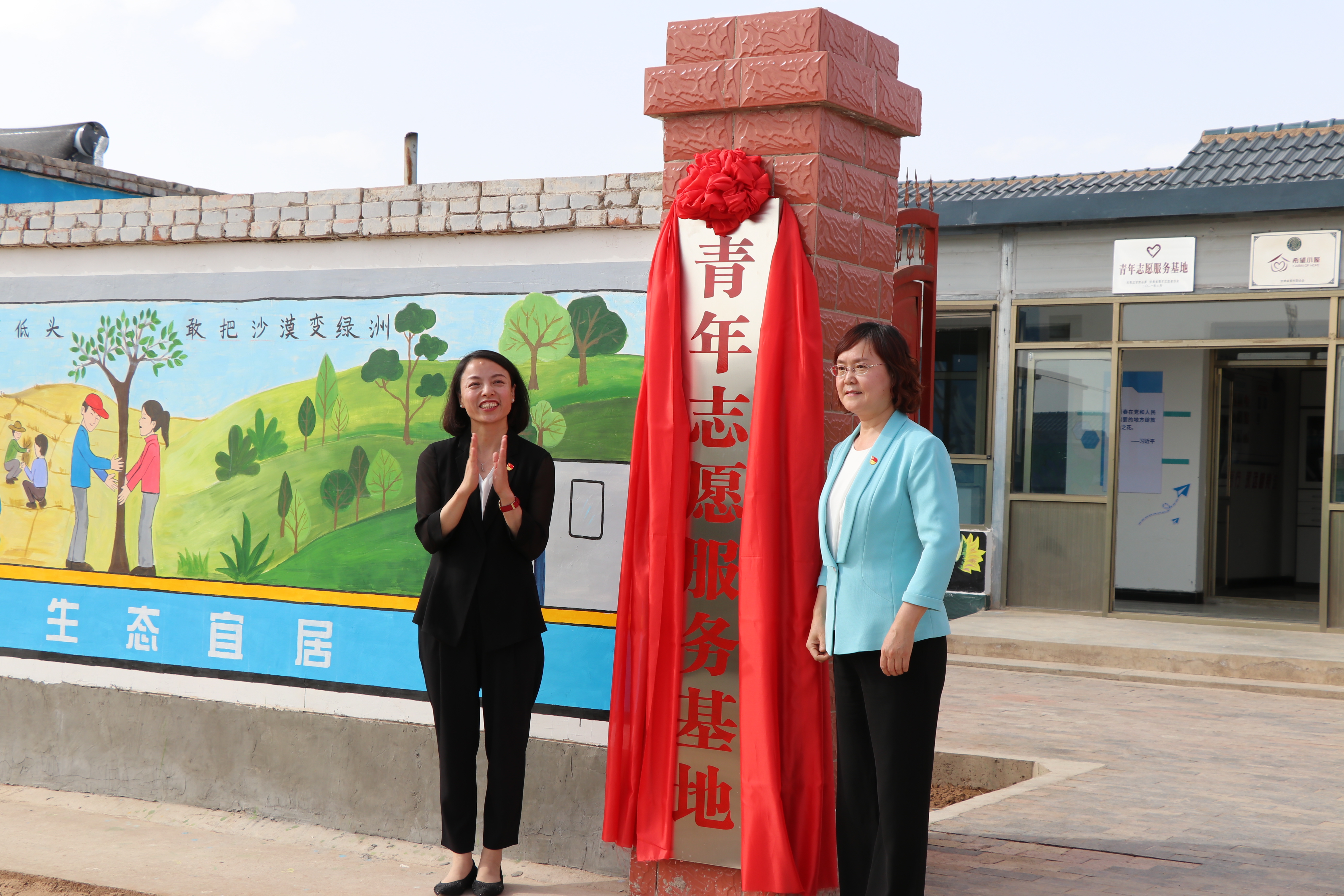在建黨100周年、習近平總書記視察甘肅兩周年來臨之際,學院與共青團甘肅省委在古浪縣富民新村共建了青年志愿服務基地。6月21日下午,全省鄉(xiāng)村振興青年志愿者服務行動誓師大會在古浪縣富民新村召開,團省委書記蔣小麗、武威市政府副市長王雁為基地揭牌。