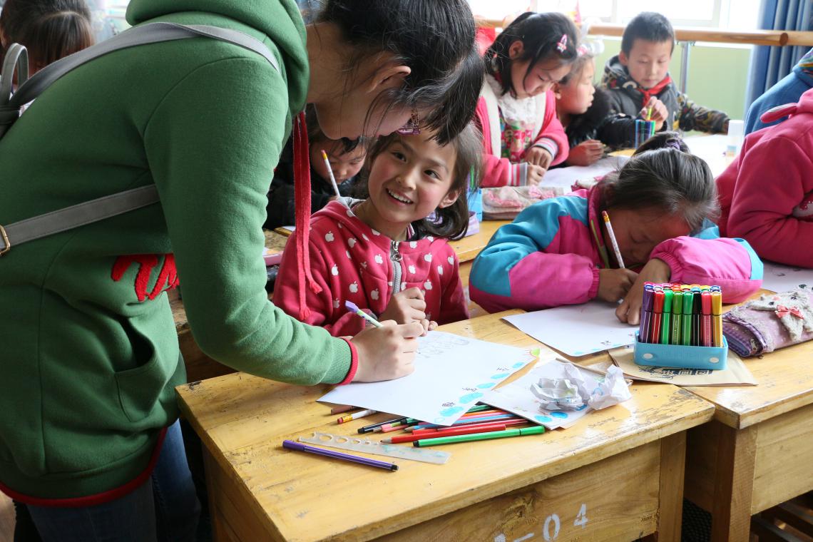 接下來的互動環(huán)節(jié),志愿者們將自己的美術(shù)作品和手工藝作品進行了展覽,并協(xié)助小朋友們完成全家福的創(chuàng)作和手工藝品的制作。畫一幅全家福,讓他們感受到家的溫暖,疊一只小船載著“他們”的未來揚帆遠航,疊一顆“紅心”為他們送去最真摯的祝福,愿他們茁壯成長。最后由四壩中學張校長為表現(xiàn)突出的小朋友頒發(fā)了紀念品,這一環(huán)節(jié)不僅激發(fā)了小朋友們學習繪畫和手工藝品的興趣,而且提高了小朋友的動手能力,交流能力,同時提高了志愿者的服務能力。