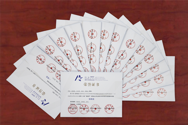 近期,省教育廳和團省委等4部門聯(lián)合下發(fā)了《關(guān)于第十三屆“挑戰(zhàn)杯”甘肅省大學(xué)生課外學(xué)術(shù)科技作品競賽獲獎情況的通報》,我院在本屆大賽中再創(chuàng)佳績,在主賽道中,我院遴選參賽32件作品,獲特等獎1項、一等獎2項、二等獎5項、三等獎14項;在紅色專項賽中,我院遴選推送6件作品,獲二等獎3項、三等獎3項;總成績位列職業(yè)院校前列,學(xué)院再次捧得“優(yōu)秀組織獎”。