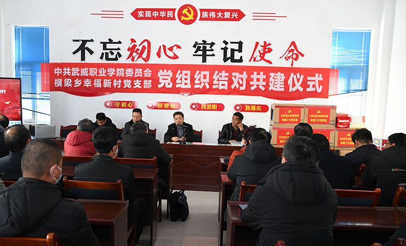 12月11日,學院黨委與康寧新村、幸福新村黨支部在康寧新村會議室舉行了黨組織結對共建捐贈活動,與2個村黨支部就結對共建工作進行了深入交流,捐贈了價值2000元的黨建用品。趙明表示,學院要發(fā)揮黨組織優(yōu)勢,在康寧新村、幸福新村幫建高質量標準化2個黨員活動室,組織學院黨支部和幫扶村黨支部開展結對共建活動,探索鄉(xiāng)村振興新模式、新方法、新思路,形成可復制、可推廣的經驗,使“黨建共建”成為鍛煉干部的重要平臺,助力推動古浪縣橫梁鄉(xiāng)康寧新村和幸福新村鄉(xiāng)村振興。趙明強調,要進一步深化黨建引領,將黨建工作融入鄉(xiāng)村振興的全過程,不斷完善“黨建+”模式,組織幫扶干部、駐村干部和幫扶村黨員深入開展黨史學習教育,扎實開展“我為群眾辦實事”,推進學院黨建與基層黨建水平共同提升,在鄉(xiāng)村振興中切實發(fā)揮好村黨支部戰(zhàn)斗堡壘作用和黨員先鋒模范作用。2個幫扶村黨支部書記表達了感謝,對共建工作提出建議。