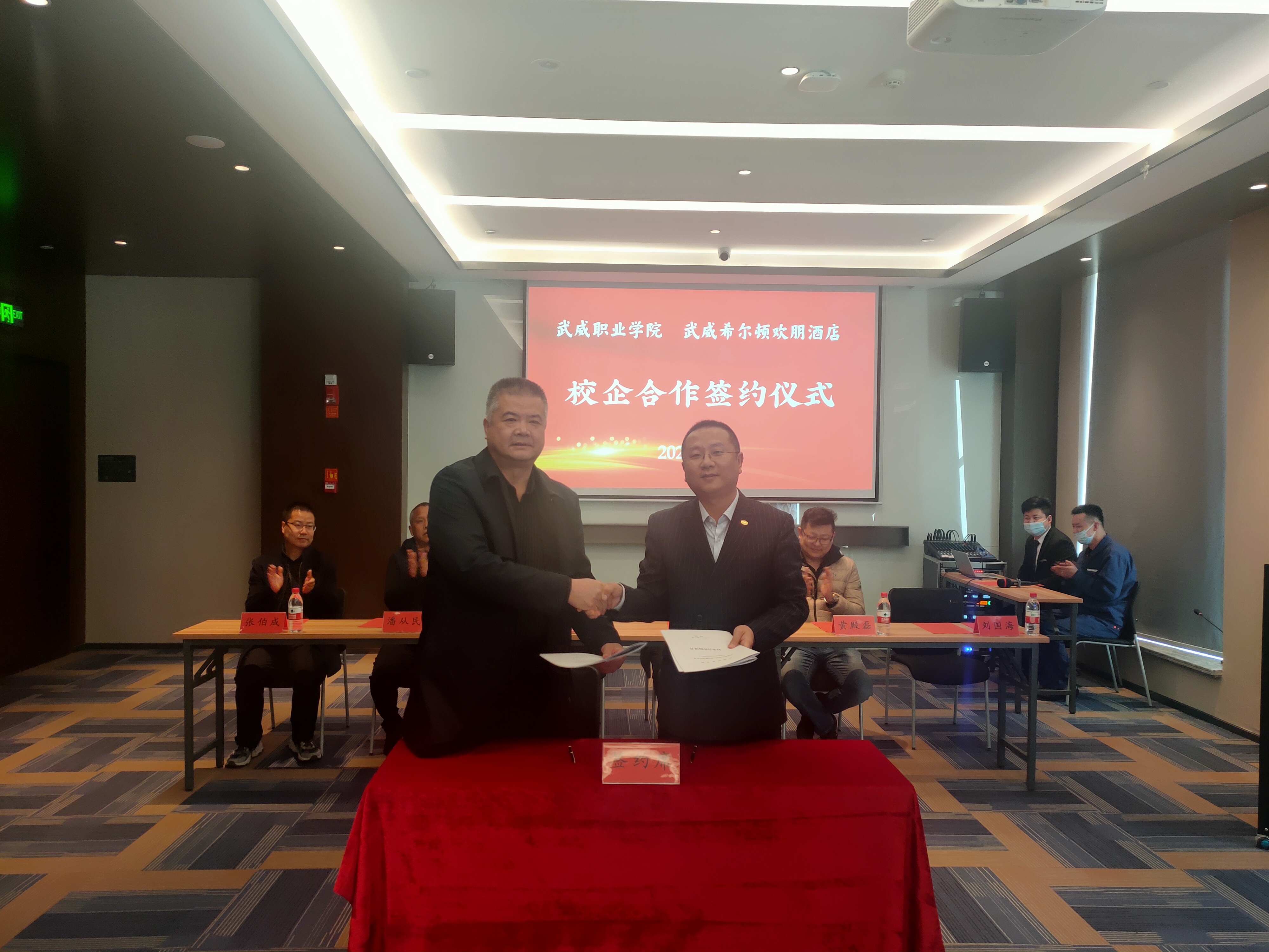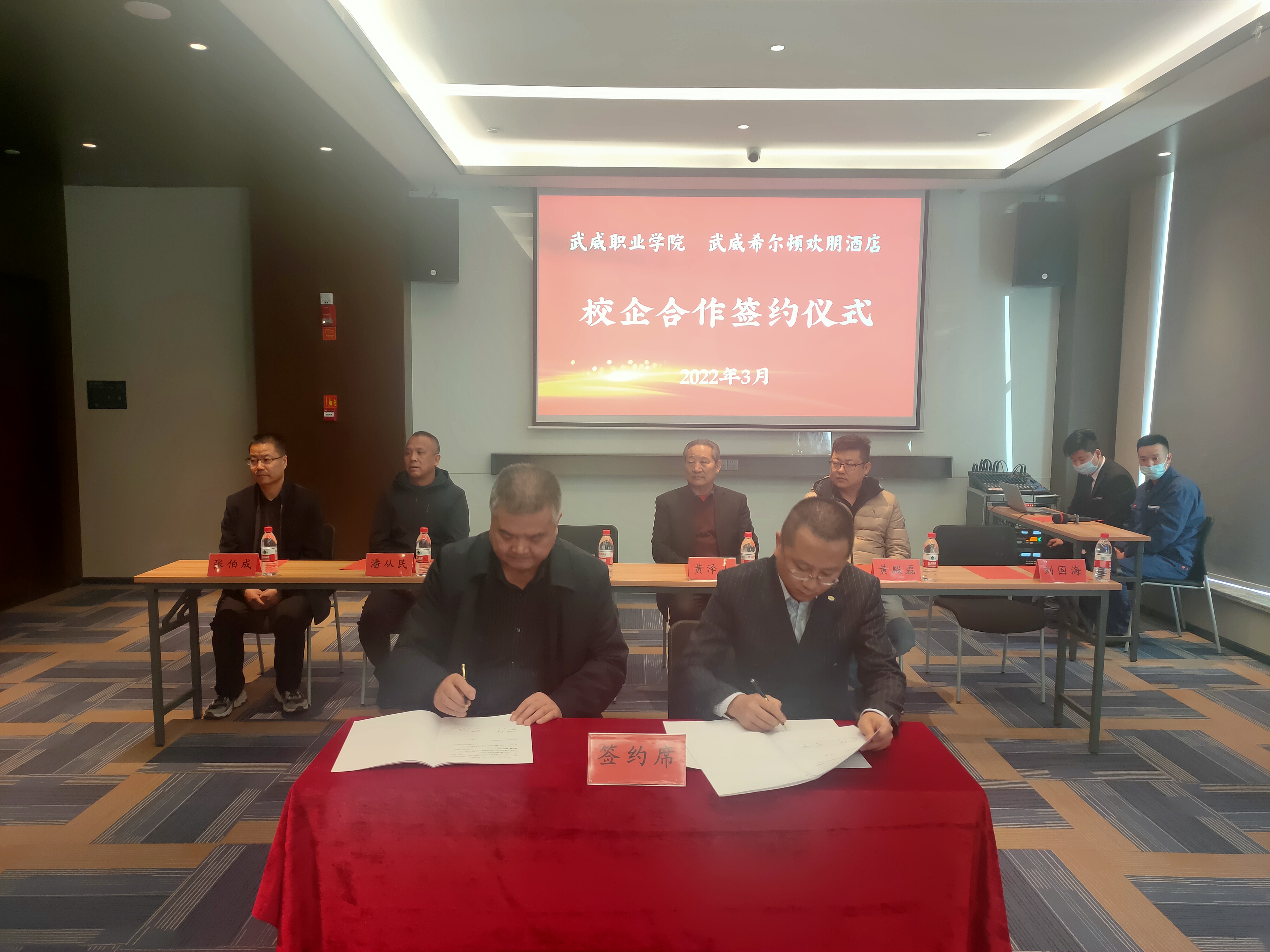 為深入貫徹落實教育部2022屆普通高校畢業(yè)生就業(yè)創(chuàng)業(yè)網(wǎng)絡(luò)視頻會議精神,統(tǒng)一思想,提高認識,服務(wù)學(xué)院“雙高計劃”建設(shè),3月2日,學(xué)院與武威希爾頓歡朋酒店舉行校企合作揭牌暨簽約儀式,副校長王守云代表學(xué)院出席簽約儀式。