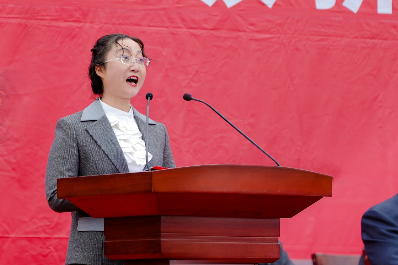 上午9時,大會在莊嚴的國歌聲中拉開序幕,二十余名學(xué)生代表致獻詞《請黨放心,強國有我》,用最飽滿的聲音,堅定地向黨道出了青春的誓言。