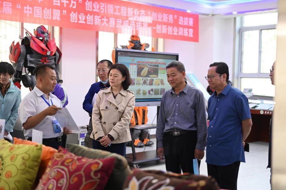 考察組一行還實地走訪了我校雙創(chuàng)中心、中國傳統(tǒng)文化體驗中心和武威市體育場,近距離體驗了我校師生近年來開展創(chuàng)新創(chuàng)業(yè)教育工作成果和部分獲獎作品,詳細了解了實驗(訓(xùn))室建設(shè)成效,并入場參觀武威市體育場建設(shè)情況,對學(xué)校近年來建設(shè)省級“雙高計劃”院校、積極申辦職業(yè)技術(shù)大學(xué)工作成效給予充分認可。