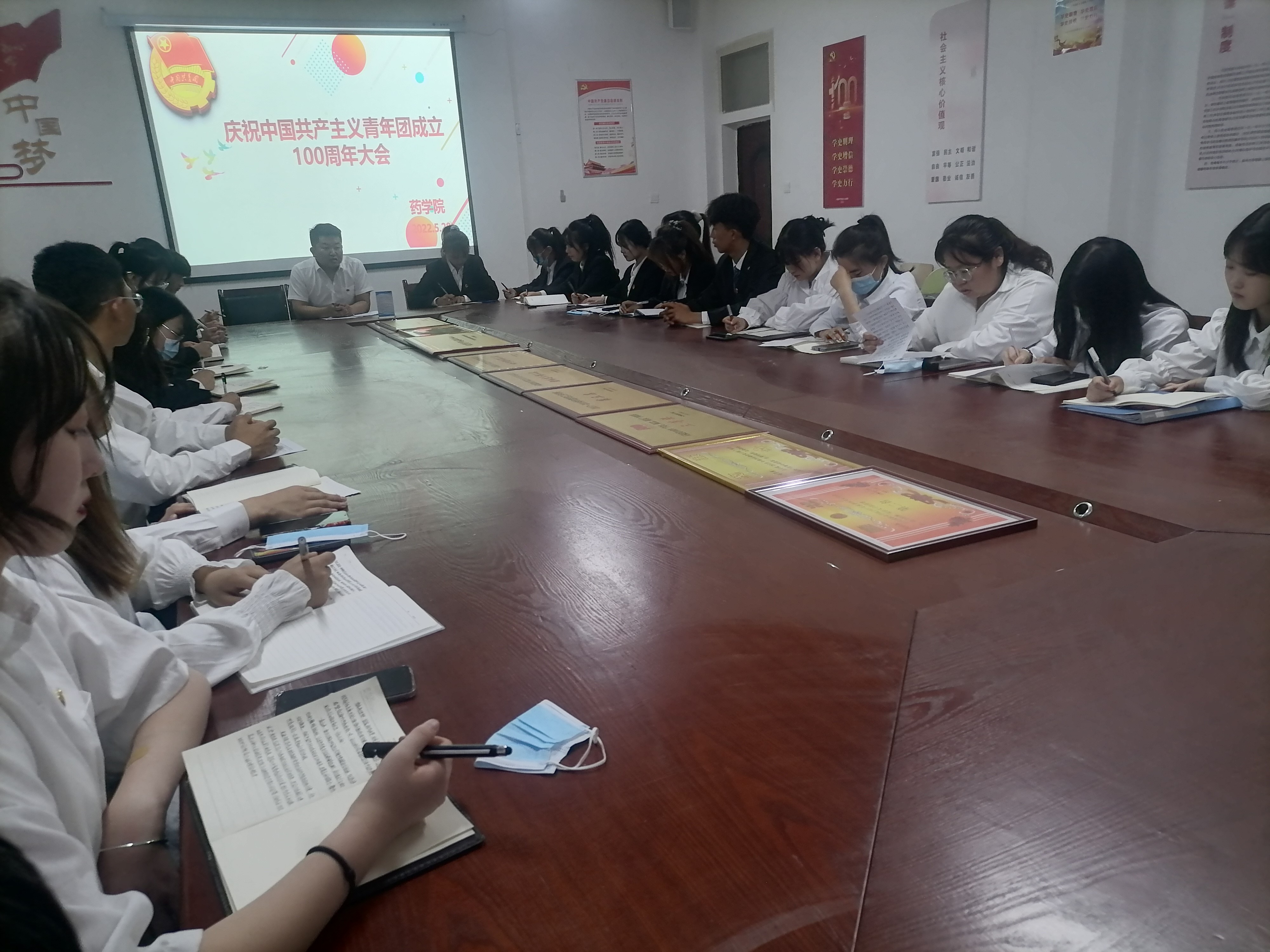 2022年5月28日,藥學院團委在尚德樓411會議室以“喜迎二十大,奮進新征程,永遠跟黨走”為主題,開展學習習近平總書記在慶祝中國共產(chǎn)主義青年團成立100周年大會上的重要講話精神專題學習交流研討會。