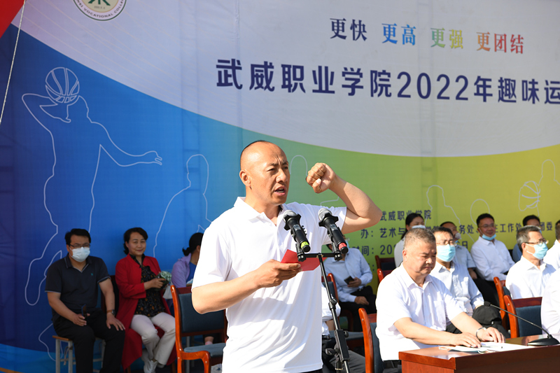 5月24日上午,武威職業(yè)學(xué)院2022年趣味運(yùn)動會在運(yùn)動場隆重開幕。開幕式由學(xué)校黨委委員、副校長王守云主持。學(xué)校領(lǐng)導(dǎo)班子成員,各部門負(fù)責(zé)同志,二級學(xué)院黨總支書記、院長參加開幕式。學(xué)校黨委書記、校長趙明出席并致開幕詞。