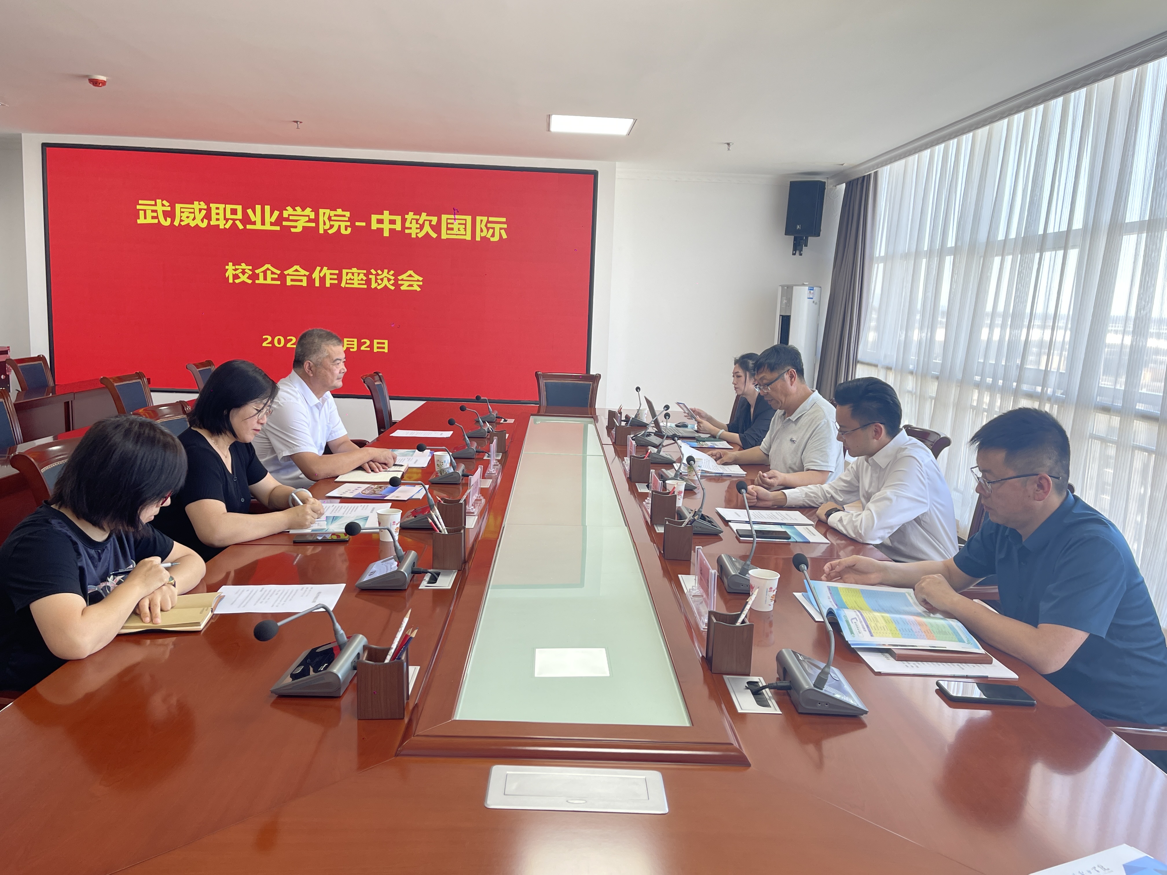 王守云詳細(xì)介紹了學(xué)校的發(fā)展歷程、辦學(xué)規(guī)模、辦學(xué)定位、辦學(xué)思路、辦學(xué)特色、辦學(xué)成效、未來發(fā)展、校企合作模式等情況。趙永慶介紹了武威市推介僑商投資招商項(xiàng)目開展情況,鄧思遠(yuǎn)詳細(xì)介紹了中軟國際企業(yè)概況、發(fā)展歷程以及開展的校企合作項(xiàng)目。李亞梅介紹了信息技術(shù)學(xué)院相關(guān)專業(yè)人才培養(yǎng)、專業(yè)建設(shè)、技術(shù)合作、招生就業(yè)等方面的基本情況,并就今后開展進(jìn)一步合作提出了意見。中軟國際教育科技集團(tuán)代表就合作方式、產(chǎn)業(yè)學(xué)院共建等做了詳細(xì)闡述,雙方就產(chǎn)教融合、實(shí)訓(xùn)基地建設(shè)等方面進(jìn)行了深入探討交流,達(dá)成了初步合作意向。