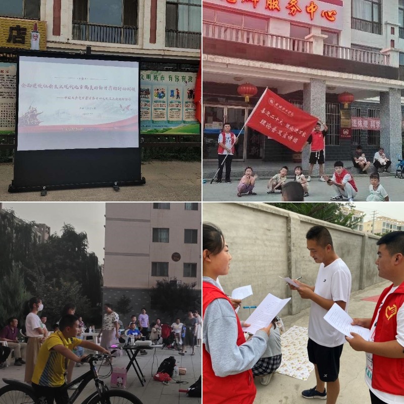 為深入學(xué)習(xí)習(xí)近平總書記在慶祝中國共產(chǎn)主義青年團(tuán)成立100周年大會上的重要講話精神,貫徹落實黨的十九屆六中全會精神和省第十四次黨代會精神,引導(dǎo)和幫助廣大青年學(xué)生上好與現(xiàn)實相結(jié)合的“大思政課”,在社會課堂中“受教育、長才干、作貢獻(xiàn)”,堅定信念聽黨話、跟黨走,迎接黨的二十大勝利召開,由翟存祥名師工作室指導(dǎo)的“習(xí)近平新時代中國特色社會主義思想學(xué)習(xí)社”的大學(xué)生積極組建理論普及宣講團(tuán),開展理論普及宣講活動。