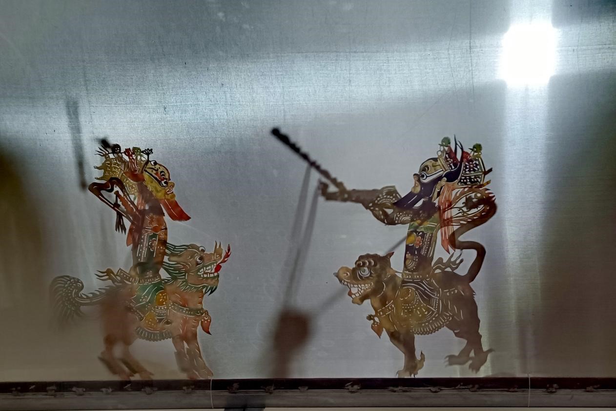 皮影戲俗稱燈影戲,是中國(guó)古老的戲劇形式之一。通過(guò)傳統(tǒng)老藝人精選上等牛皮,經(jīng)過(guò)刮、磨、洗、刻、著色等二十多道工序,手工雕刻3000余刀而成。隨著樂(lè)器伴奏和唱腔配合,一明一暗間,那一張張栩栩如生的皮影在老藝人的操縱下,便成為“一口敘還千古事,雙手對(duì)舞百萬(wàn)兵”意趣盎然的活動(dòng)藝術(shù)形象了。