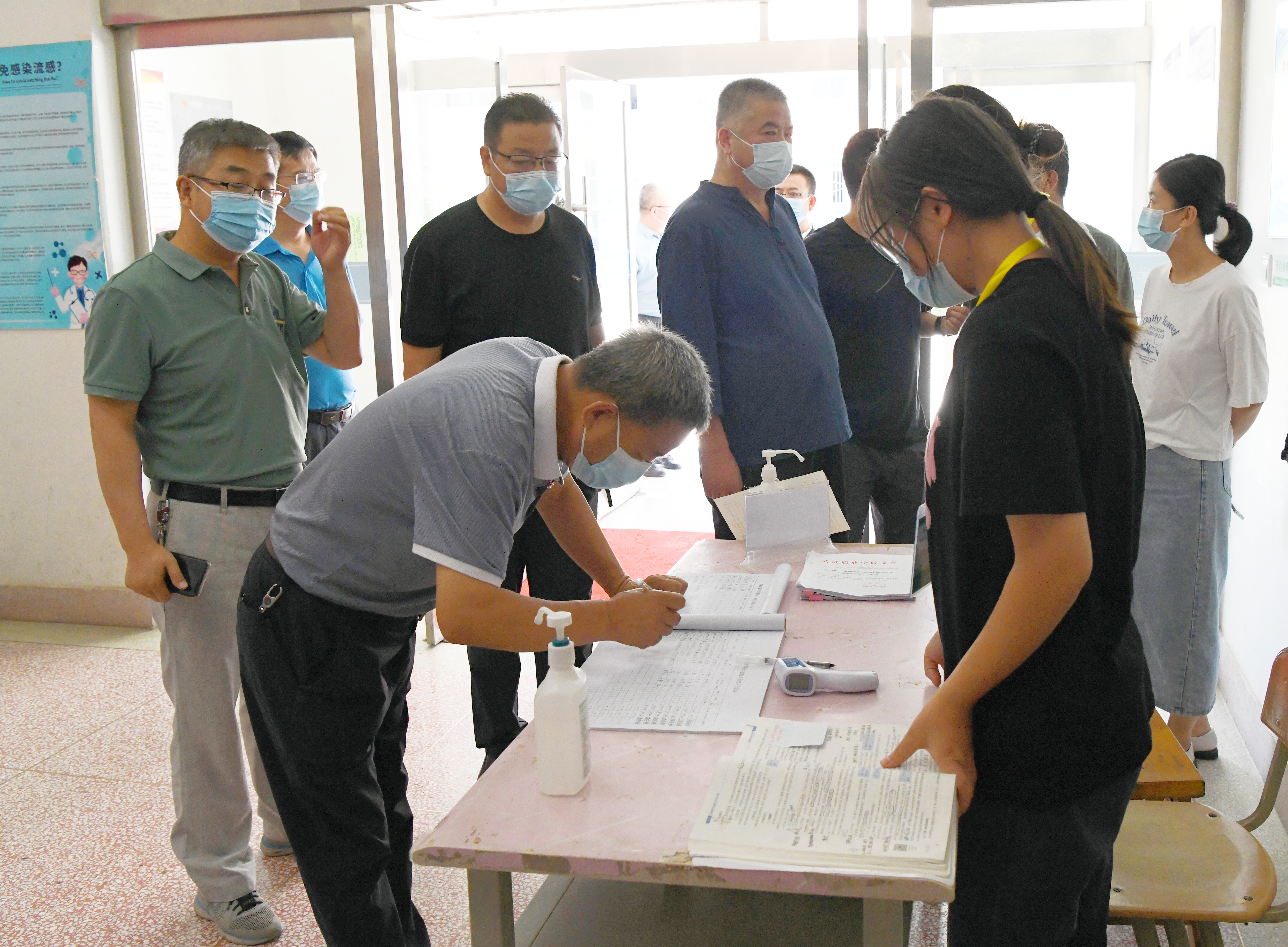 720日上午,學(xué)校黨委書記、校長趙明,副校長王永緒,紀(jì)委書記、監(jiān)察專員陳曉煜,副校長張開禮、王守云帶領(lǐng)學(xué)校辦公室、宣傳統(tǒng)戰(zhàn)部、紀(jì)檢監(jiān)察綜合室、學(xué)生工作處、后勤處、安全保衛(wèi)處和相關(guān)二級(jí)學(xué)院負(fù)責(zé)人深入學(xué)校東大門、1號(hào)餐廳、超市、學(xué)生公寓、核酸檢測點(diǎn)等地,實(shí)地檢查指導(dǎo)學(xué)校疫情防控工作。