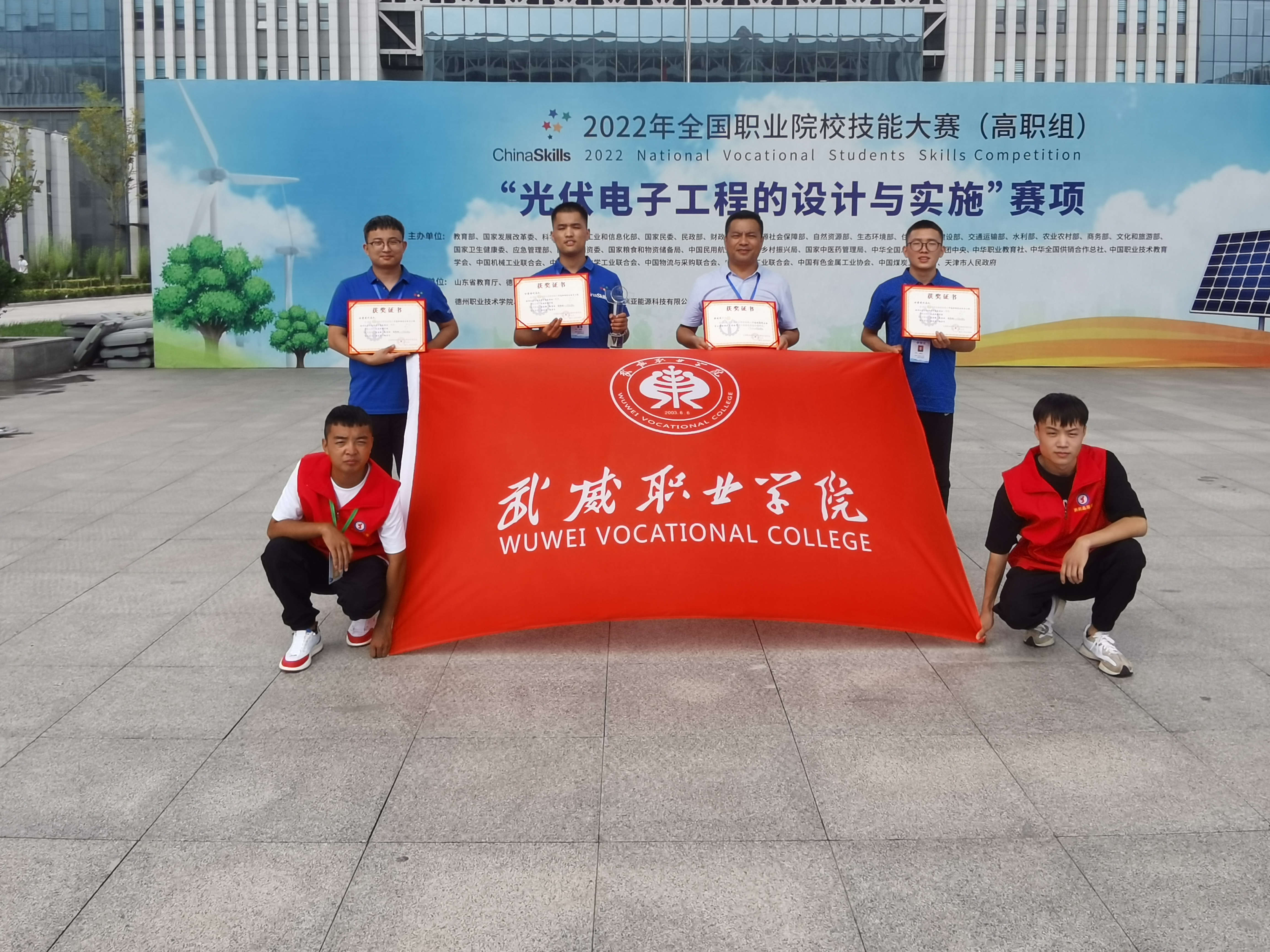 8月22日至23日,由教育部、工業(yè)和信息化部、財(cái)政部、人力資源和社會保障部、住房和城鄉(xiāng)建設(shè)部、交通運(yùn)輸部、農(nóng)業(yè)部等部委主辦的2022年全國職業(yè)院校技能大賽高職組“光伏電子工程的設(shè)計(jì)與實(shí)施”賽項(xiàng)在山東德州職業(yè)技術(shù)學(xué)院舉辦,來自全國30個(gè)省(市)、自治區(qū)的55支代表隊(duì)參加了比賽。武威職業(yè)學(xué)院中科低碳新能源技術(shù)學(xué)院高東興、富金強(qiáng)、趙寶林三名同學(xué)代表甘肅省參加本次大賽,最終榮獲國賽一等獎,完全實(shí)現(xiàn)了賽前確定的“穩(wěn)二爭一”的目標(biāo)任務(wù)。這是學(xué)校參加全國職業(yè)院校技能大賽以來首次獲得國賽一等獎,實(shí)現(xiàn)了學(xué)校該賽項(xiàng)國獎“零”的突破,開啟了學(xué)校專業(yè)建設(shè)高質(zhì)量發(fā)展新征程。本次優(yōu)異成績的取得充分展現(xiàn)了學(xué)?!皪徴n賽證”相融通的綜合育人效果,充分體現(xiàn)了學(xué)校深化“三教改革”推動高質(zhì)量發(fā)展的成效,充分彰顯了學(xué)校實(shí)施“雙高計(jì)劃”“技能甘肅”“提質(zhì)培優(yōu)”等重大項(xiàng)目建設(shè)推進(jìn)高水平發(fā)展的成效,本次競賽成績是對學(xué)校新能源類專業(yè)建設(shè)的肯定,也是武威乃至全省職業(yè)教育發(fā)展的試金石和榮光。