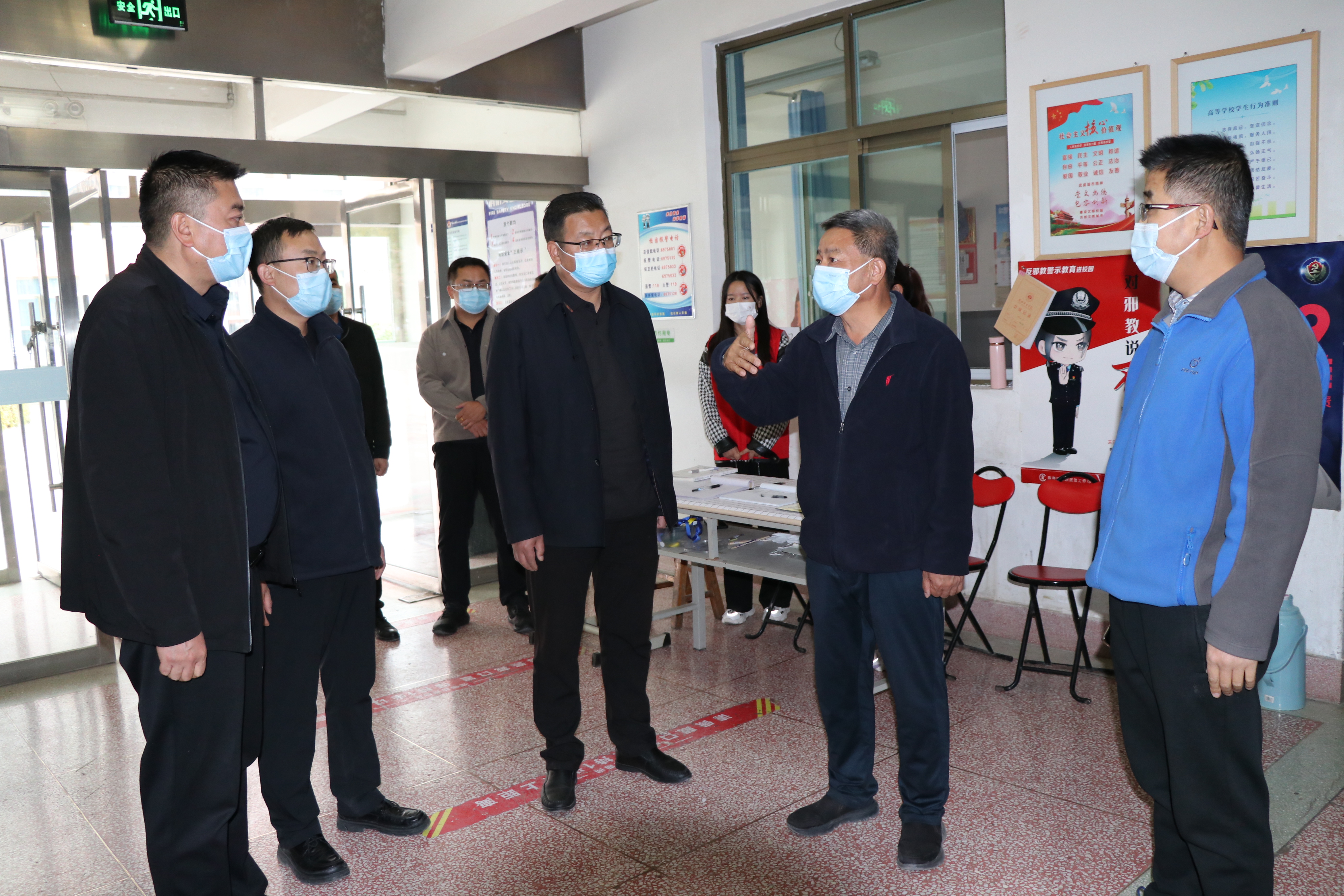 為進(jìn)一步加強(qiáng)校園疫情防控和安全穩(wěn)定工作,排查風(fēng)險(xiǎn)隱患,筑牢安全防線,10月14日,黨委書記、校長(zhǎng)趙明,黨委委員,紀(jì)委書記、監(jiān)察專員陳曉煜一行對(duì)校園內(nèi)重點(diǎn)場(chǎng)所進(jìn)行督導(dǎo)檢查。學(xué)生工作處、安全保衛(wèi)處等相關(guān)部門負(fù)責(zé)人一同檢查。