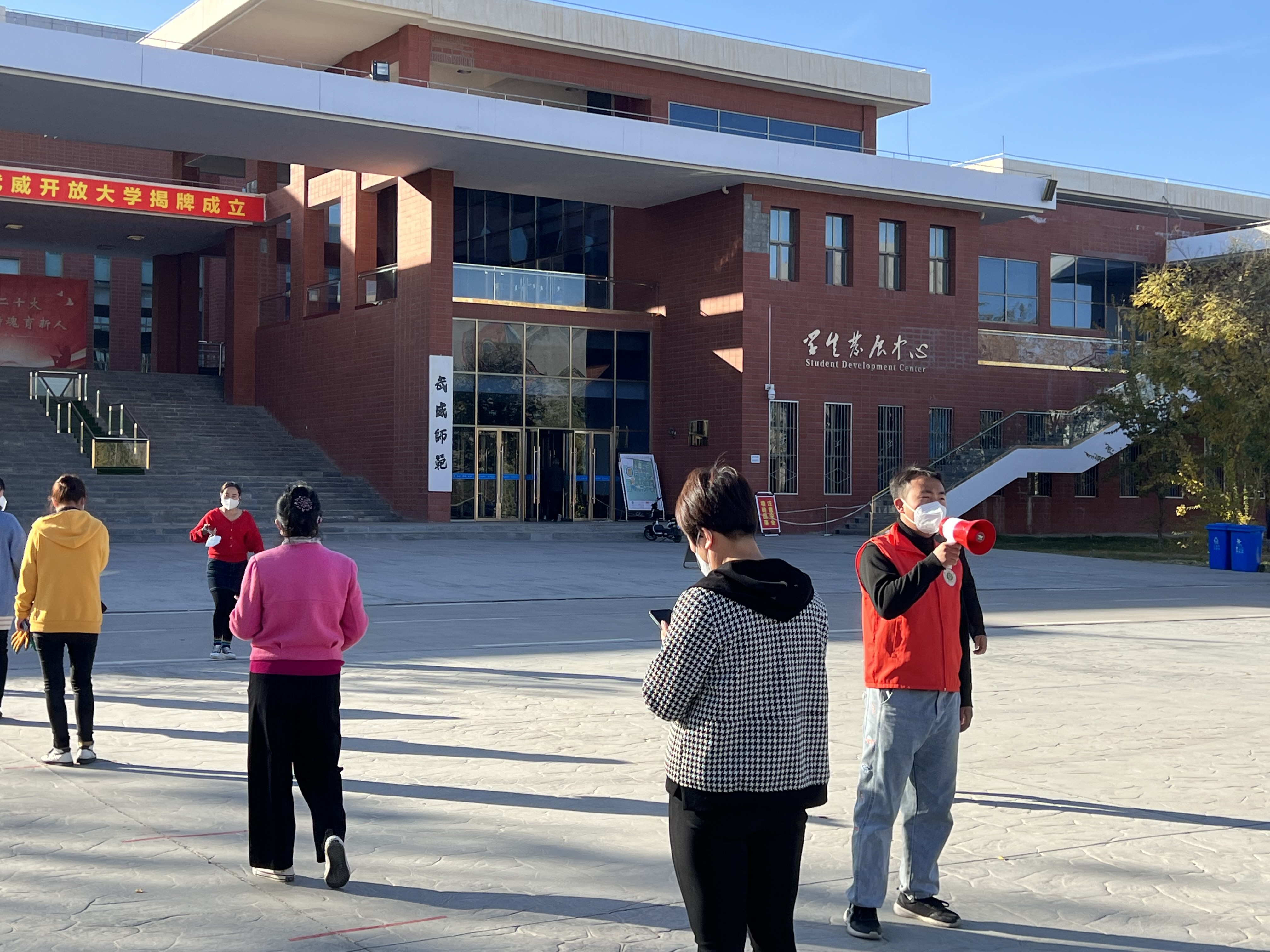 “您好,請(qǐng)測(cè)量體溫、掃場(chǎng)所碼。”“請(qǐng)佩戴好口罩,有序排隊(duì)……”校學(xué)生會(huì)的陶玲在學(xué)校食堂門(mén)口值班時(shí)不停地提醒著進(jìn)出打飯的同學(xué)們,這也是她參加校園疫情防控以來(lái)每天講得最多的話。自10月13日涼州區(qū)實(shí)施臨時(shí)管控以來(lái),學(xué)校各學(xué)生組織聞令而動(dòng),身穿“藍(lán)馬甲”積極投身校園疫情防控一線,用奉獻(xiàn)溫暖了這個(gè)秋天。