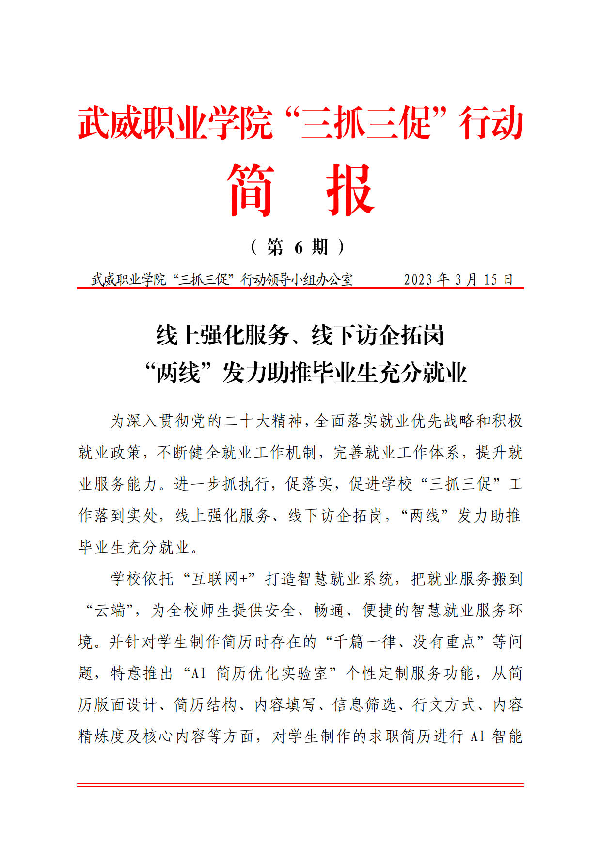 簡報第6期:線上強化服務(wù)、線下訪企拓崗,“兩…