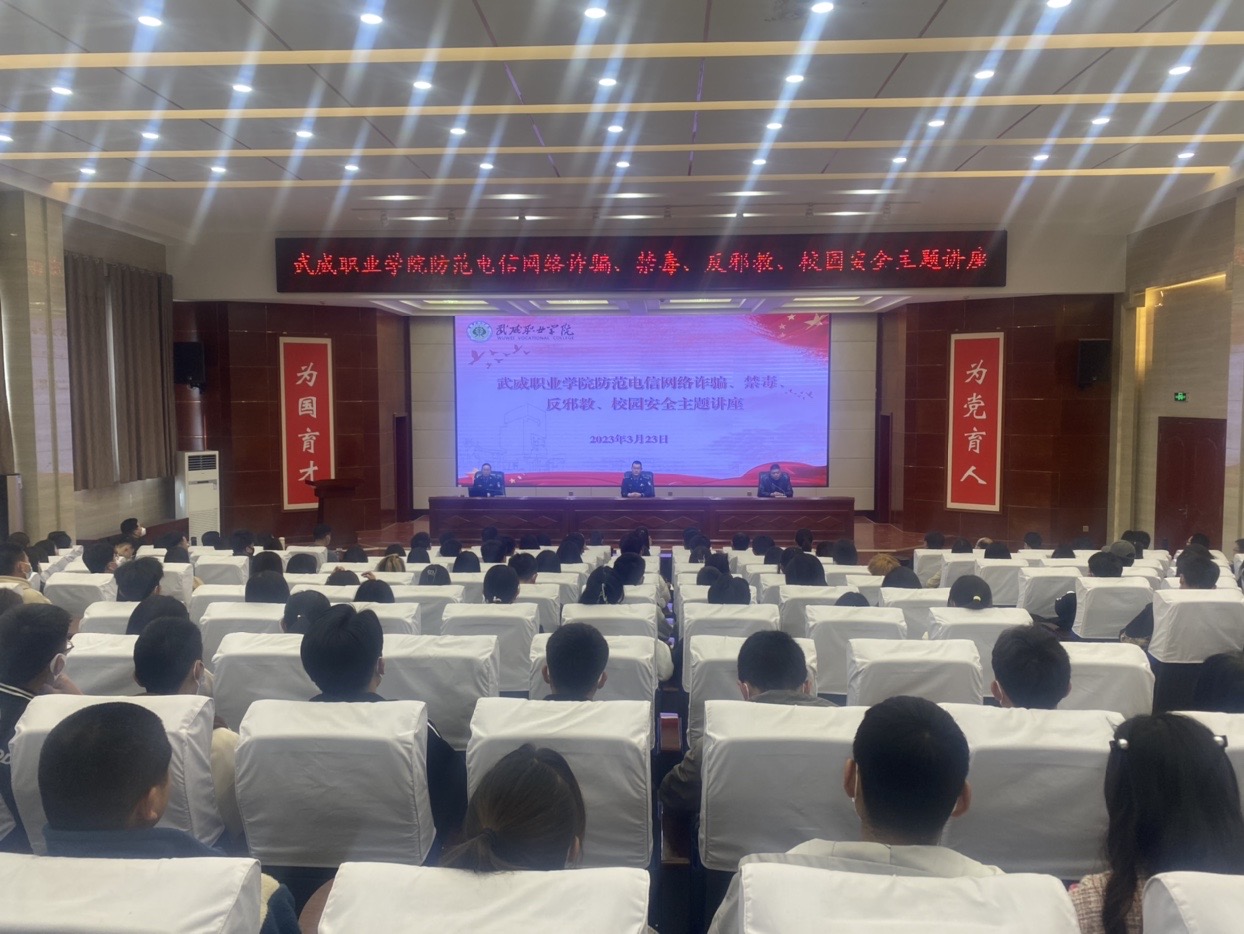 為進(jìn)一步加強(qiáng)防范電信網(wǎng)絡(luò)詐騙、禁毒、反邪教、校園安全宣傳教育工作,提高廣大師生防范意識(shí),3月24日下午,學(xué)校安全保衛(wèi)處邀請(qǐng)涼州區(qū)西關(guān)派出所民警為學(xué)校師生開展防范電信網(wǎng)絡(luò)詐騙、禁毒、反邪教、校園安全主題講座。講座由學(xué)校安全保衛(wèi)處負(fù)責(zé)人李欣主持,西關(guān)派出所副所長(zhǎng)藺福鵬參加講座。