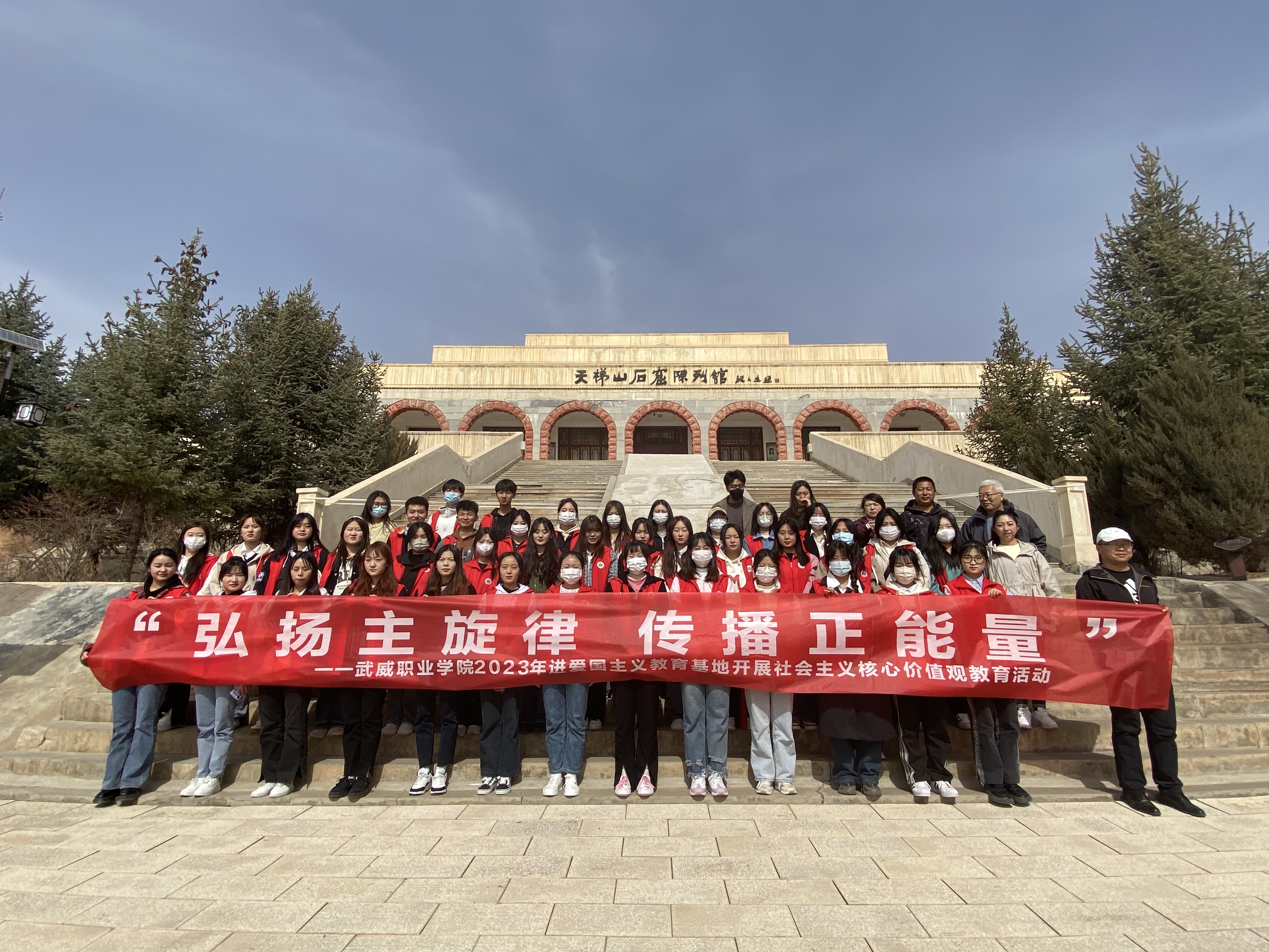 為扎實推進愛國主義教育和國防教育,加強學生的德育教育和政治思想工作,激勵廣大師生樹立堅定的理想信念,厚植愛國情懷,走好新時代長征路。2023年3月17至18日,藝術與教育學院組織師生前往武威市天梯山石窟和西郊公園國防教育基地,開展愛國主義教育實踐活動。