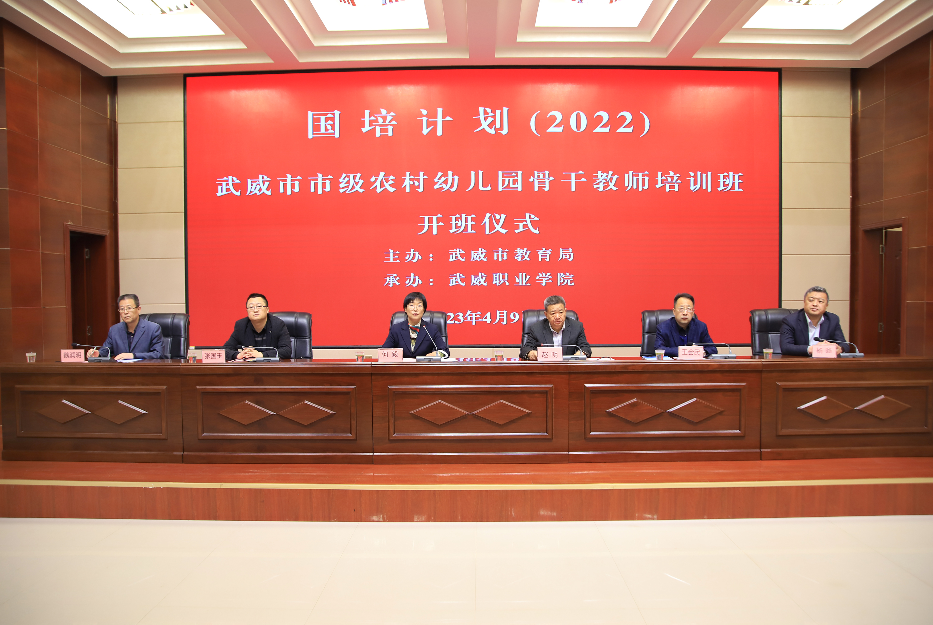 2023年4月9日上午,“國培計劃(2022)”武威市市級農(nóng)村幼兒園骨干教師培訓(xùn)班開班儀式在學(xué)院菁英廳舉辦,武威市教育局、武威職業(yè)學(xué)院領(lǐng)導(dǎo)及相關(guān)科室負責(zé)人參加開班儀式。