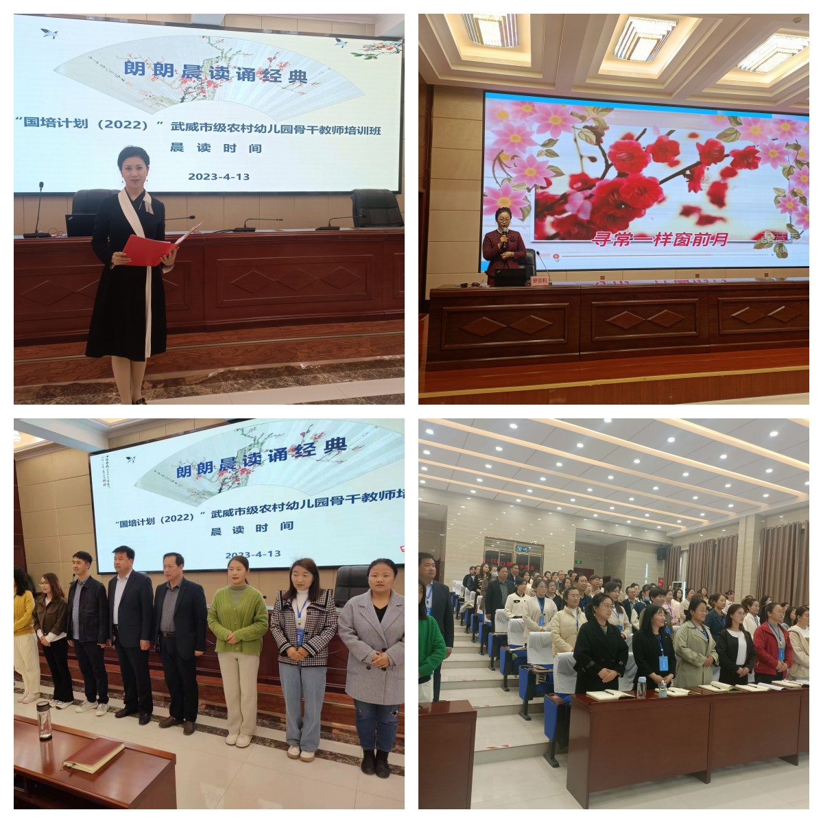 相約晨光,不負韶華。每天的培訓(xùn)從元氣滿滿的“郎朗晨讀誦經(jīng)典”開始,袁潔、趙穎等老師作為領(lǐng)讀人帶領(lǐng)全體學(xué)員誦讀詩詞、經(jīng)典名篇。袁潔老師領(lǐng)讀的《涼州詞》、趙穎老師領(lǐng)讀的《祖國啊,我親愛的祖國》,時而豪邁,時而溫婉,讓培訓(xùn)學(xué)員感受到與眾不同的浸潤式培訓(xùn)體驗。