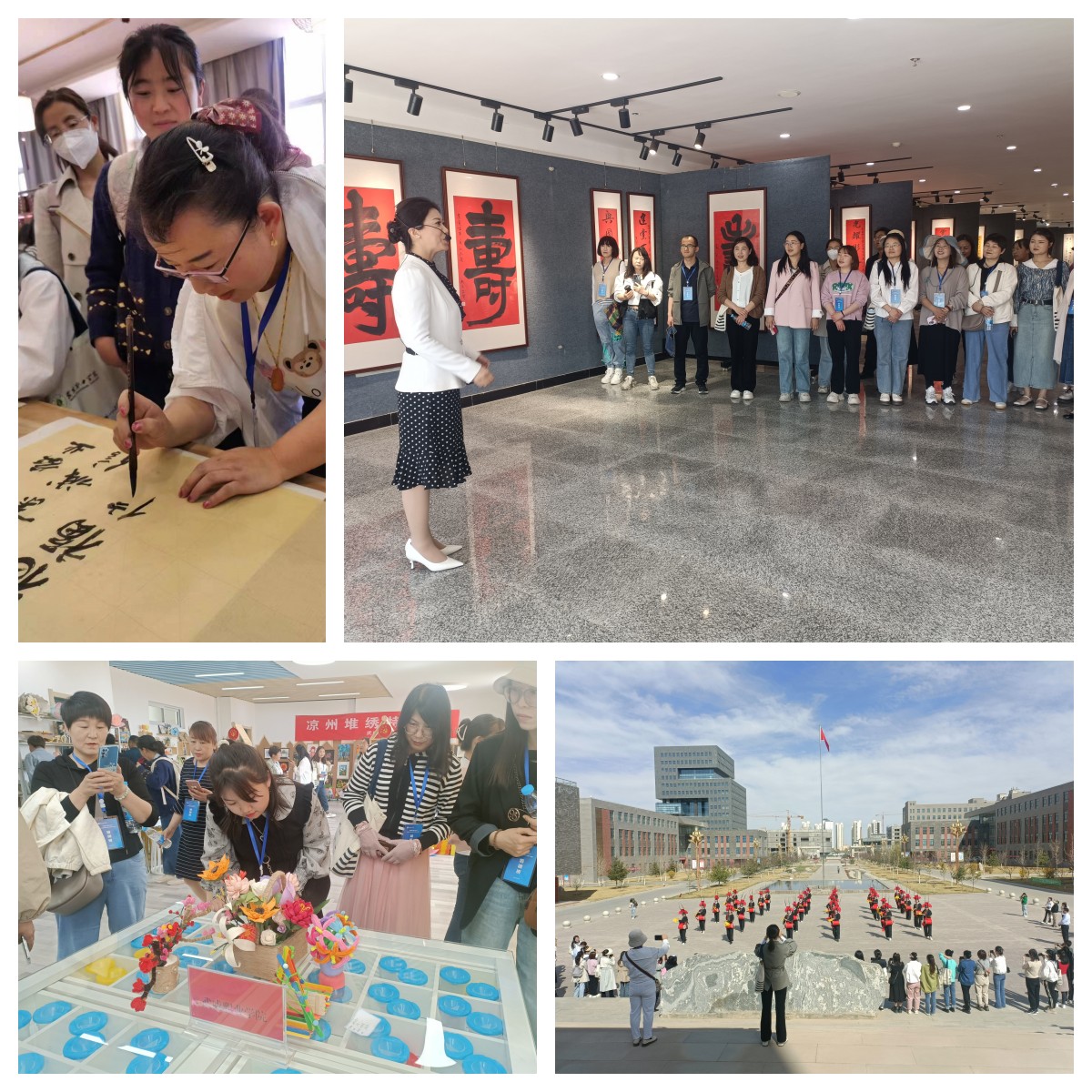 16日下午,培訓班組織學員觀摩學校學前教育專業(yè)實訓中心、紅色文化藝術(shù)館、傳統(tǒng)文化體驗中心、非遺體驗中心等場館。在講解老師的帶領(lǐng)下,學員們有感而發(fā),唱紅歌、彈鋼琴、練書法,使紅色教育理念在觀摩中得以升華,現(xiàn)場氣氛激情熱烈,學員們對學校的發(fā)展贊嘆不已,隨后,全體學員觀看涼州攻鼓子表演,并合影留念。