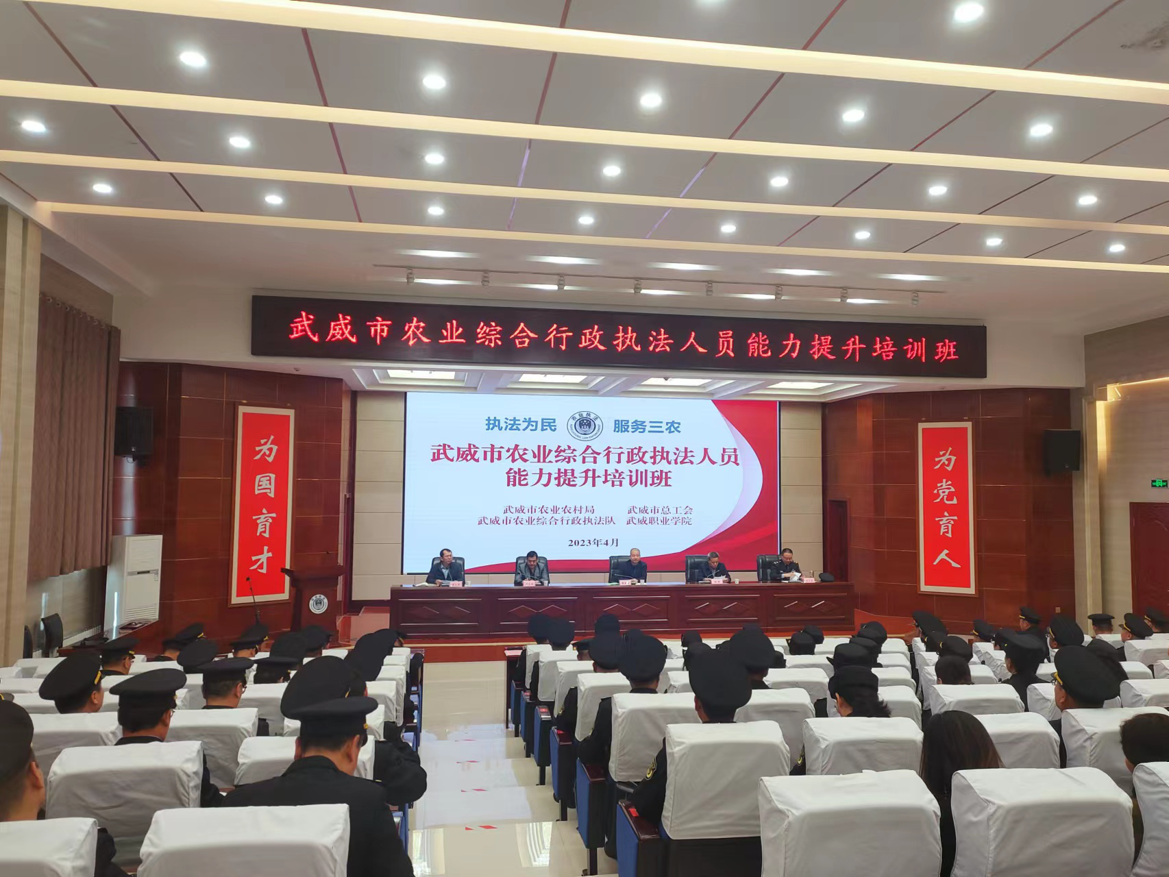 4月20日,由武威市農(nóng)業(yè)農(nóng)村局、武威市總工會(huì)、武威市農(nóng)業(yè)綜合行政執(zhí)法隊(duì)共同舉辦,學(xué)校承辦的“武威市農(nóng)業(yè)綜合行政執(zhí)法人員能力提升培訓(xùn)班”圓滿落幕。市、縣農(nóng)業(yè)綜合行政執(zhí)法隊(duì)共120人參加此次培訓(xùn)。