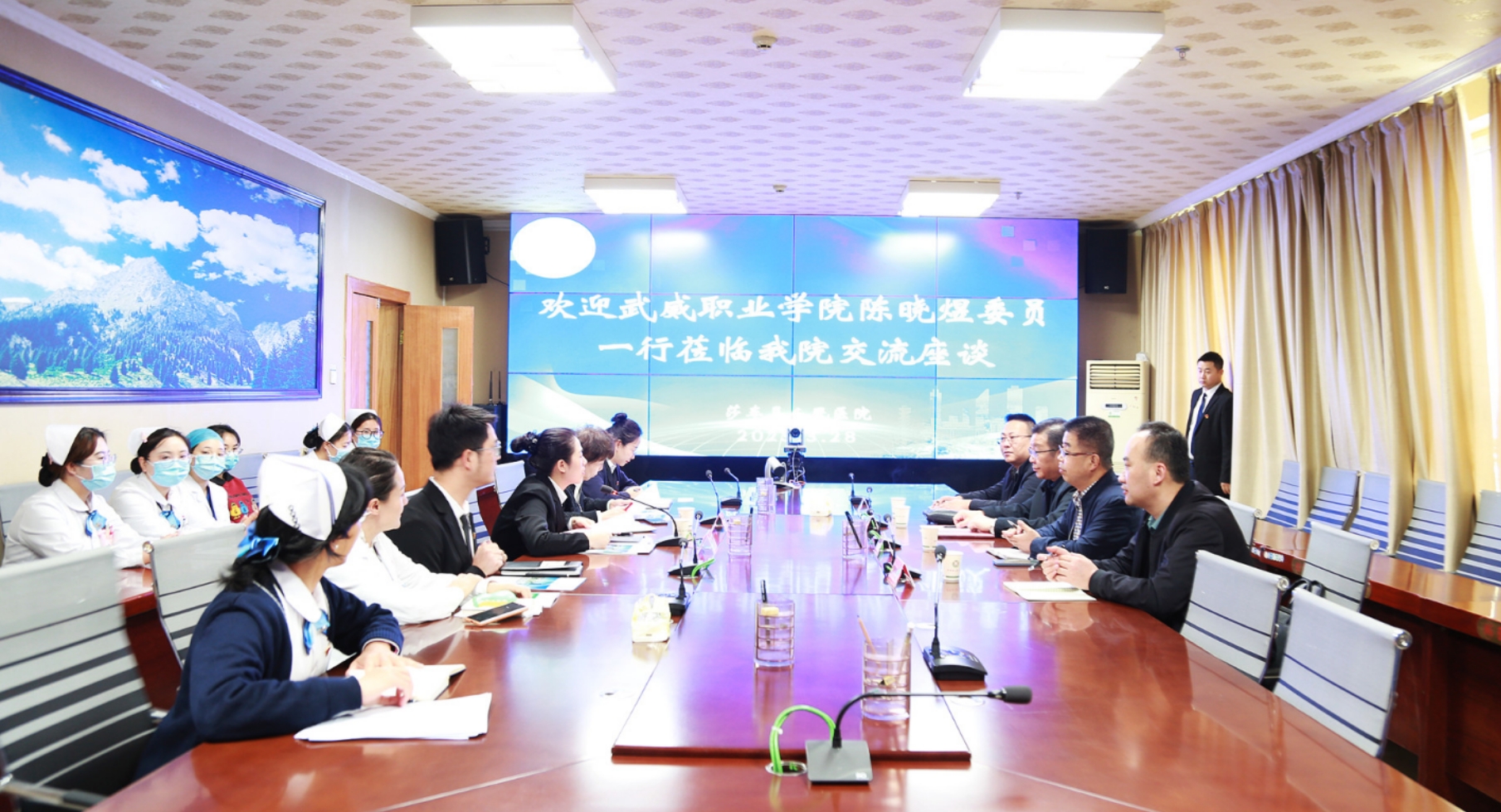 在和田地區(qū)人民醫(yī)院訪企拓崗座談會上,陳曉煜介紹了學校發(fā)展情況和本次走訪醫(yī)院的工作任務,希望進一步加強校院深度合作,共同優(yōu)化人才培養(yǎng)方案和課程設(shè)置,提升學校人才培養(yǎng)質(zhì)量,為邊疆衛(wèi)生事業(yè)發(fā)展提供人才支持。張建輝從學校二級學院設(shè)置、師資隊伍、教育教學、開設(shè)專業(yè)、人才培養(yǎng)、畢業(yè)生實習就業(yè)等方面做了介紹。和田地區(qū)人民醫(yī)院院長艾尼玩·阿布都熱依木介紹了醫(yī)院的基本情況及用人需求,對我校畢業(yè)生給予了高度評價。醫(yī)院現(xiàn)有我校醫(yī)藥衛(wèi)生類專業(yè)畢業(yè)生86人,其中13名護理專業(yè)畢業(yè)生擔任相關(guān)科室護士長,成為醫(yī)院護理崗位中堅力量,他希望學校培養(yǎng)更多優(yōu)秀畢業(yè)生到醫(yī)院實習就業(yè)。