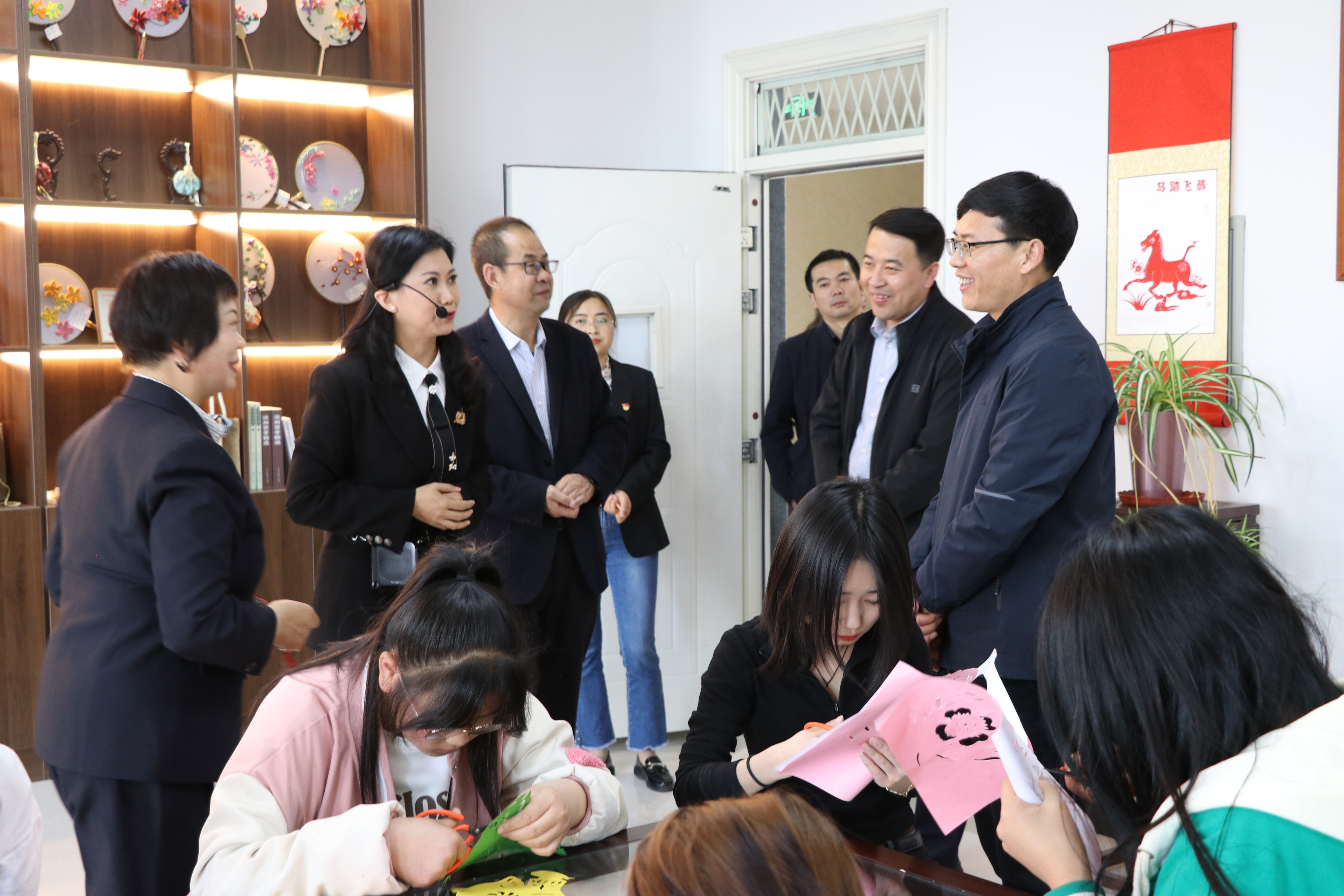 焦鵬寧一行先后深入學前教育專業(yè)實訓室、馬克思主義學院、體育場、紅色文化藝術館、翟存祥思政課名師工作室、傳統(tǒng)文化體驗中心、非遺文化體驗中心、中科低碳新能源技術學院實訓室等地實地調研參觀。翟存祥向焦鵬寧詳細介紹了學校近年來建設發(fā)展情況,重點對宣傳思想、馬克思主義學院建設、思想政治理論課教學、師資隊伍建設、課程思政改革及思政課名師工作室建設等情況進行了匯報。