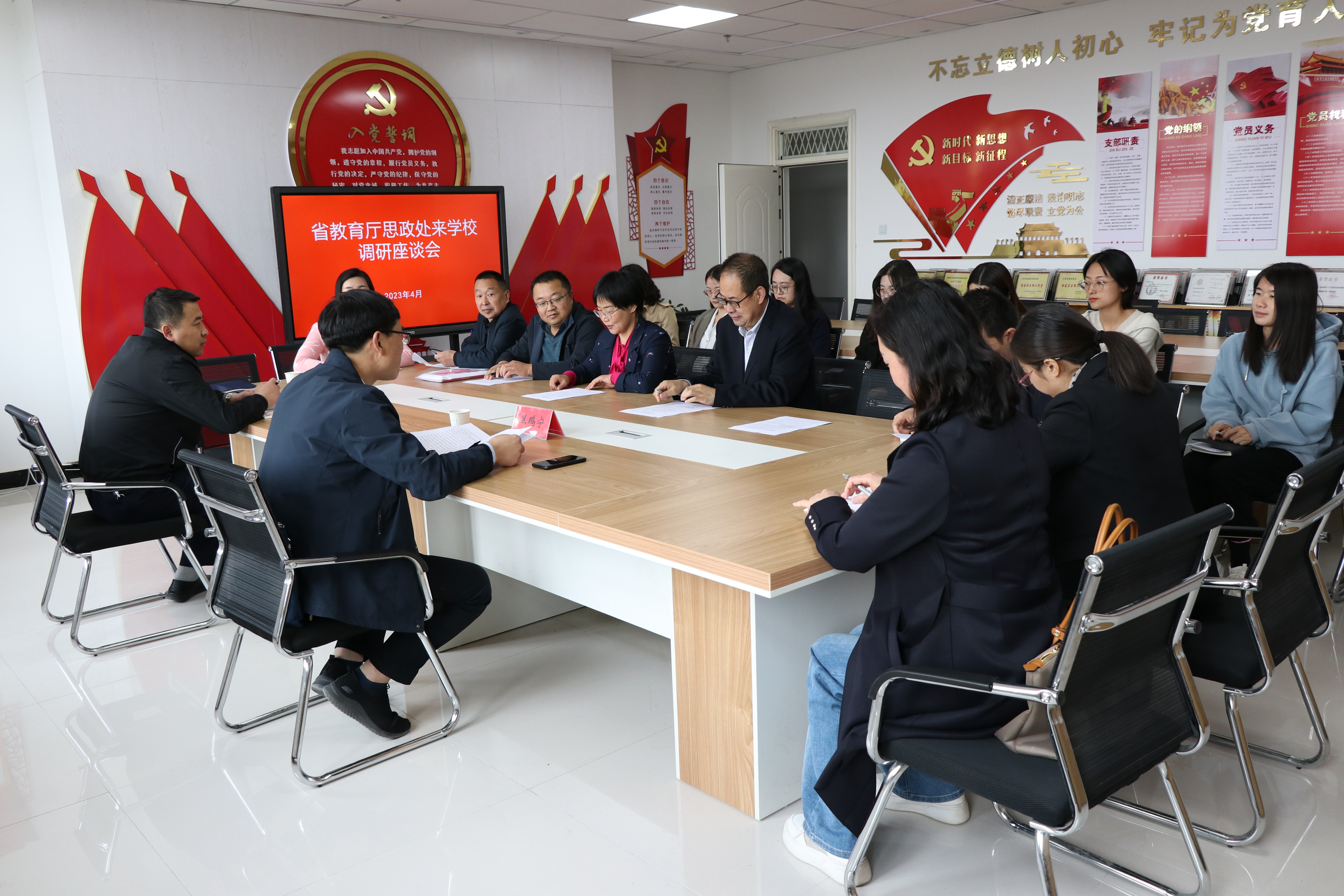 4月26日下午,省教育廳思政處處長焦鵬寧一行來學校調研指導工作。學校黨委副書記翟存祥,黨委委員、副校長何毅陪同調研。