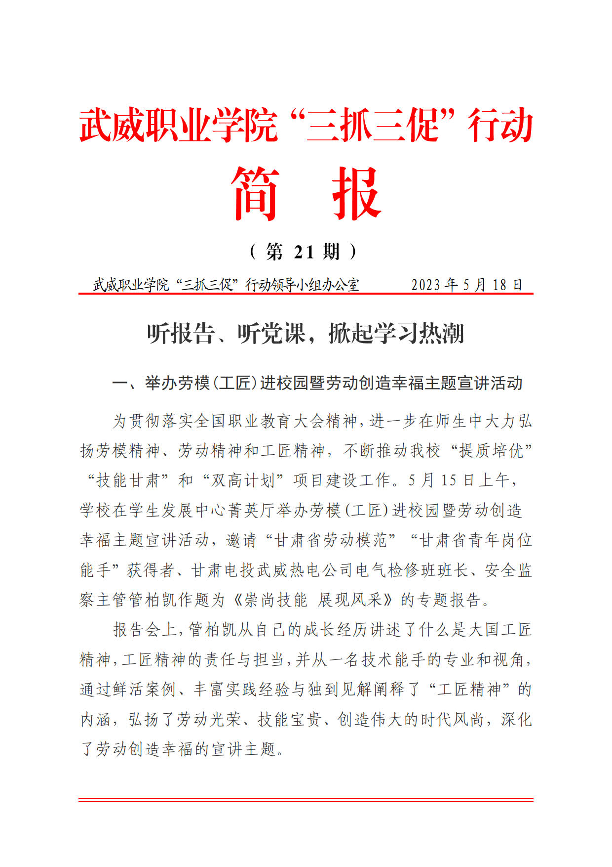 簡(jiǎn)報(bào)第21期:聽報(bào)告,聽黨課,掀起學(xué)習(xí)熱潮