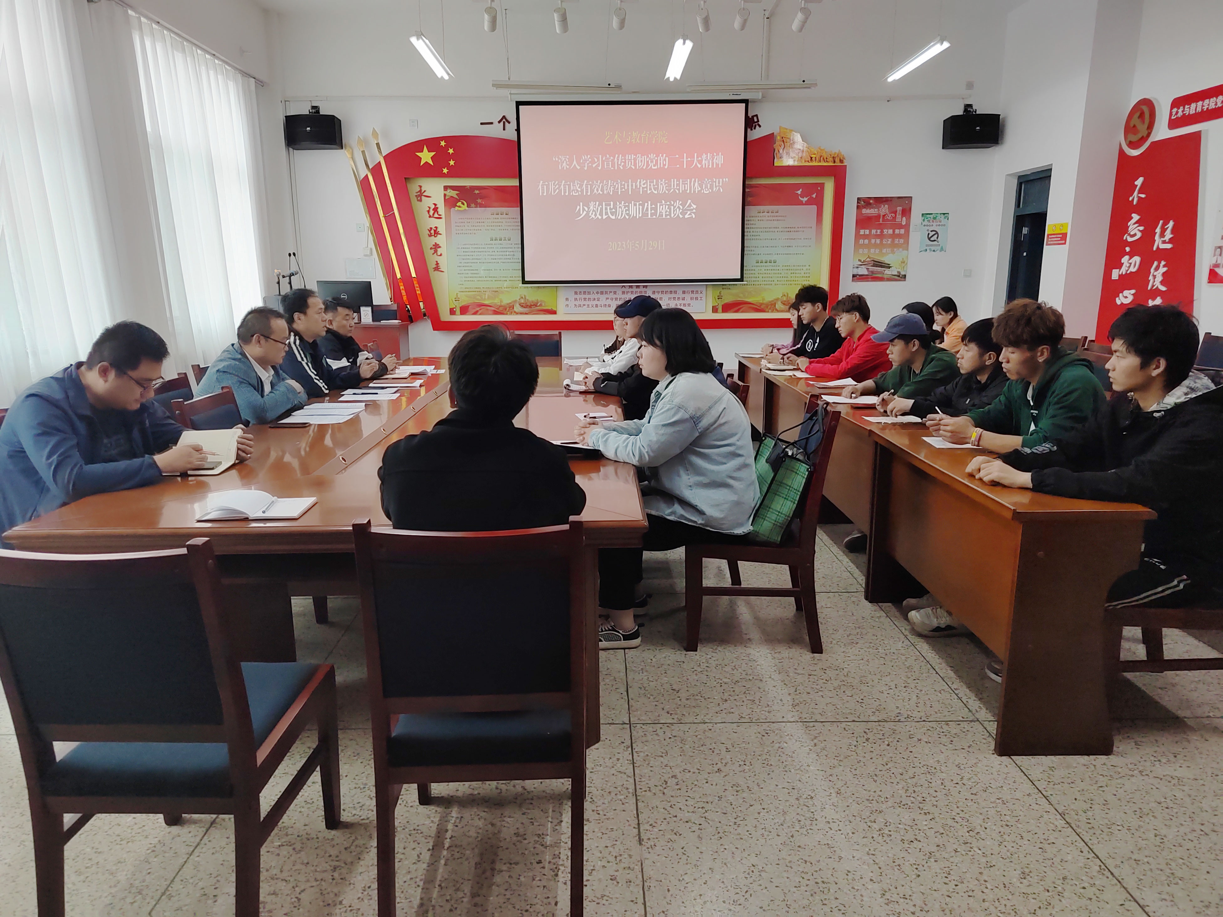 2023年5月29日下午,學(xué)院召開2023年第20個(gè)民族團(tuán)結(jié)進(jìn)步宣傳月各民族教師生座談會(huì),2022級各專業(yè)各民族學(xué)生代表,教師生代表和輔導(dǎo)員、班主任參加會(huì)議,會(huì)議由學(xué)院黨總支書記王政主持。