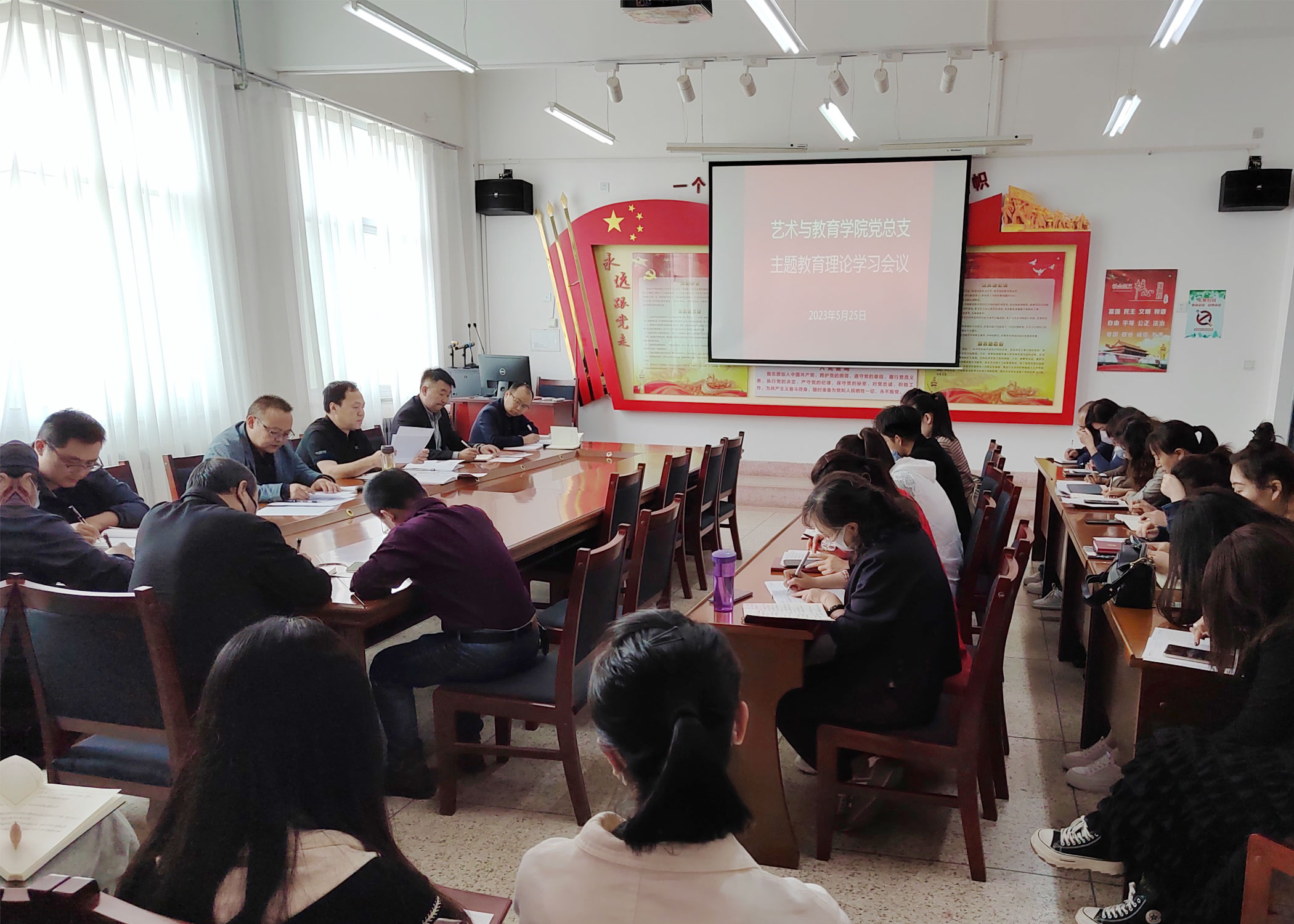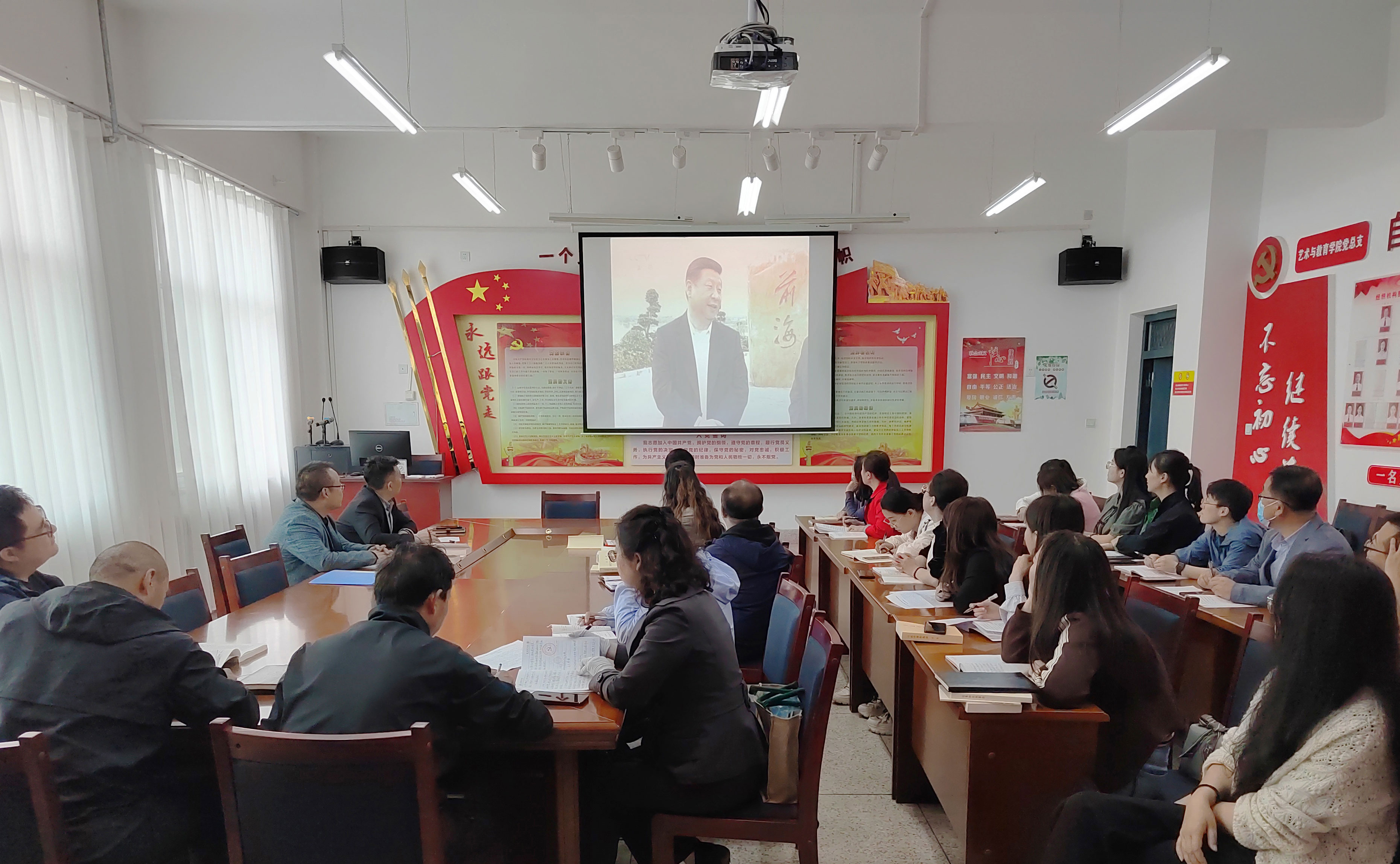 近日,藝術與教育學院黨總支開展學習貫徹習近平新時代中國特色社會主義思想主題教育專題學習及研討活動,全體黨員及入黨積極分子參加了本次活動。