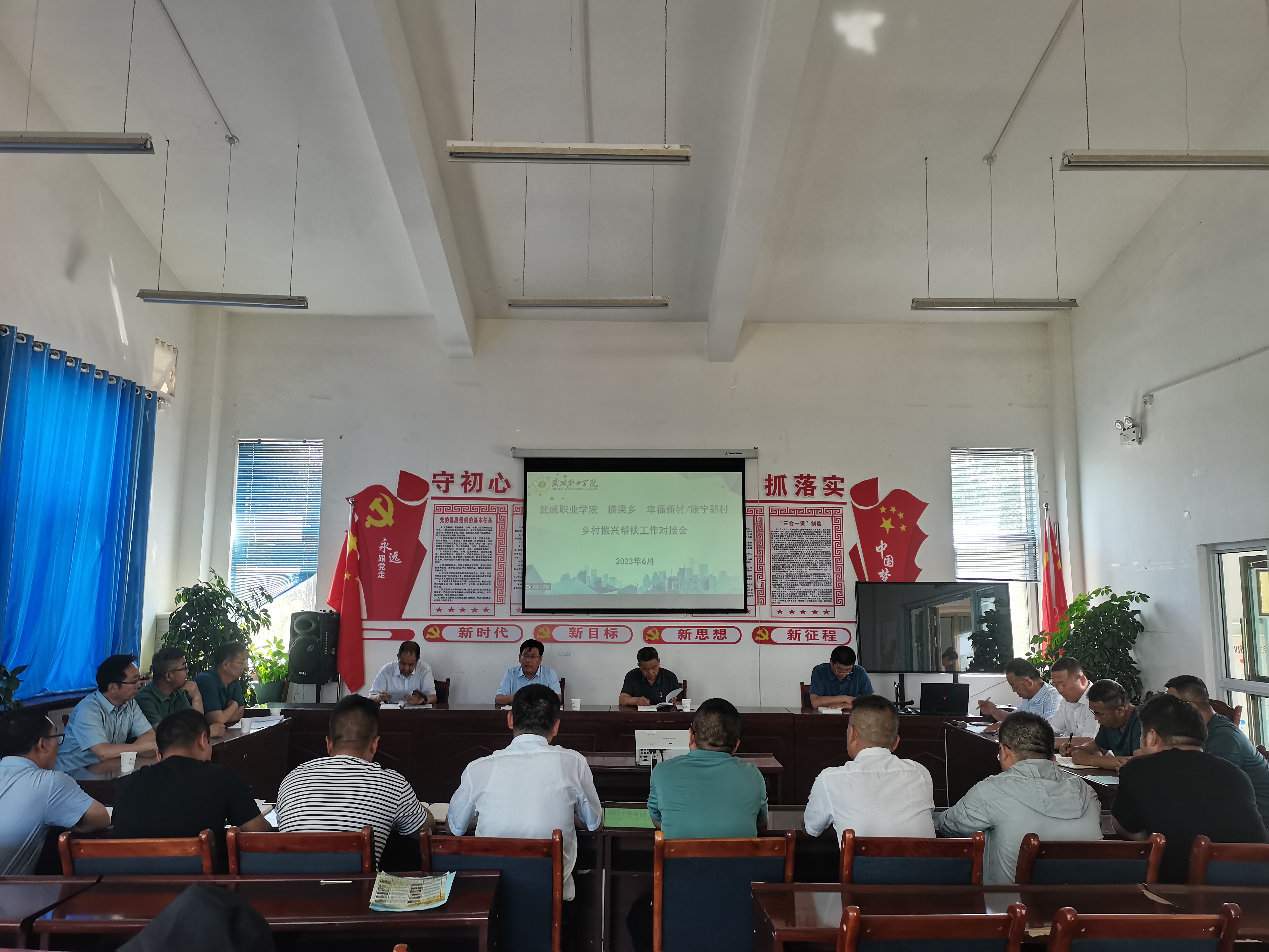 6月21日,學(xué)校專家團(tuán)隊(duì)赴古浪綠洲小鎮(zhèn)召開鄉(xiāng)村振興幫扶工作推進(jìn)會議。學(xué)校黨委書記、校長趙明教授,黨委副書記翟存祥教授,黨委委員、副校長張開禮教授,橫梁鄉(xiāng)黨委書記何文國,黨委副書記、鄉(xiāng)長張熹中,康寧新村黨支部書記兼主任劉建惠,幸福新村黨支部書記李文海出席會議,村兩委成員、學(xué)校相關(guān)部門負(fù)責(zé)人參加會議。
