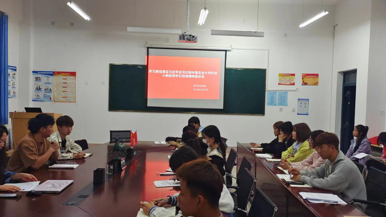 5月28日,現(xiàn)代農業(yè)學院團委舉辦學習習近平總書記給中國農業(yè)大學科技小院同學們的回信精神學習座談會,共青團干部、青年師生代表參加學習研討。