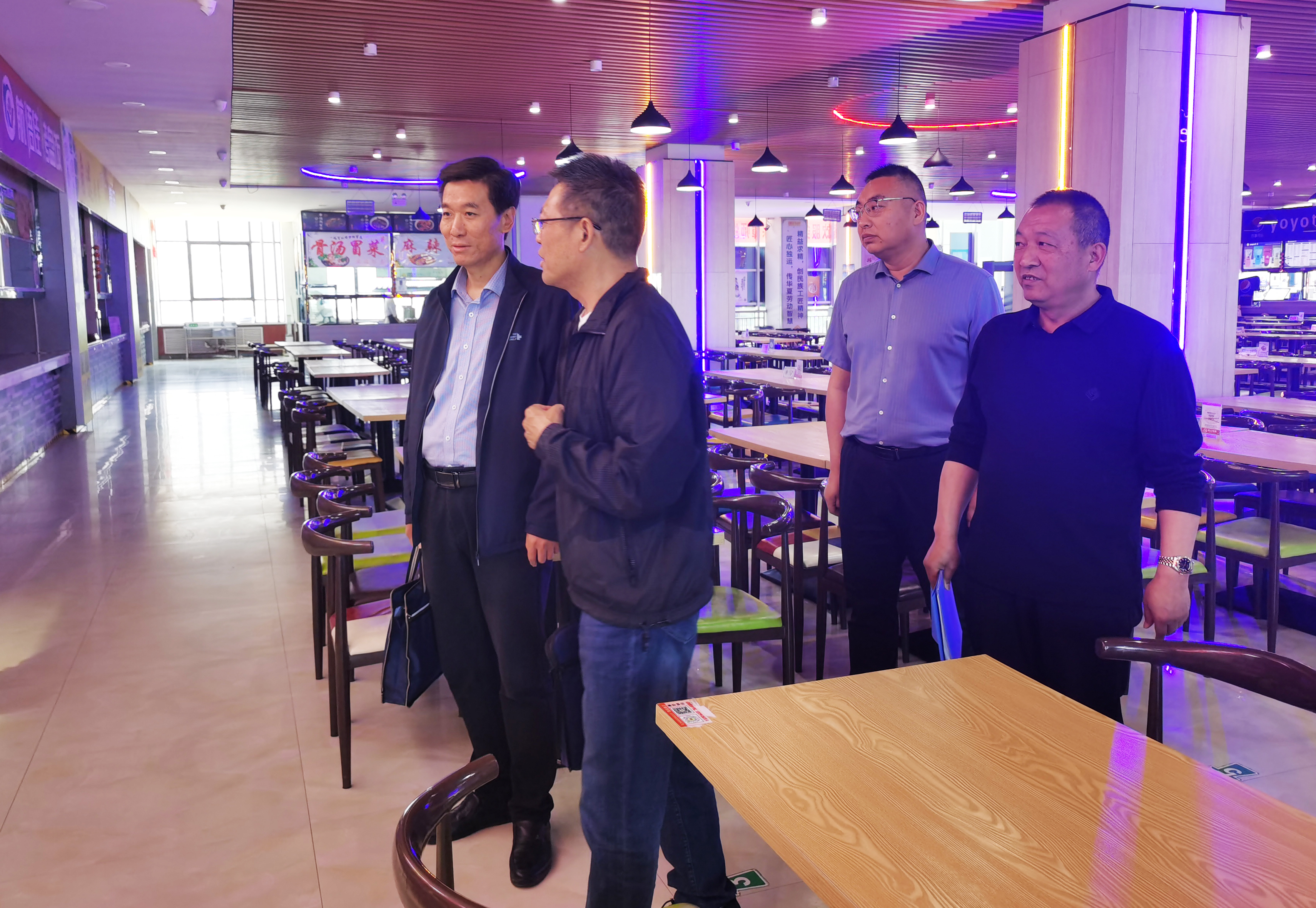 專題調(diào)研組在二號學(xué)生食堂就食堂規(guī)范化管理、食材采購存放、加工售賣、餐具消毒、環(huán)境衛(wèi)生、飯菜價格、“互聯(lián)網(wǎng)+明廚亮灶”等進行了查看。省委主題教育第十巡回指導(dǎo)組對此次調(diào)研主題及學(xué)校食堂保供穩(wěn)價、就餐環(huán)境等工作給予了充分肯定,同時也提出了意見建議。一是要及時消除安全隱患,維修翹邊、下沉吊頂;二是提供多層次餐飲服務(wù),滿足不同地域?qū)W生的口味需求;三是加強細節(jié)管理,提升管理水平。為從業(yè)人員配發(fā)透明餐飲口罩,在確保安全衛(wèi)生的前提下,提升從業(yè)人員工作舒適度。四是要厲行節(jié)約,持續(xù)倡導(dǎo)光盤行動,杜絕舌尖上的浪費。