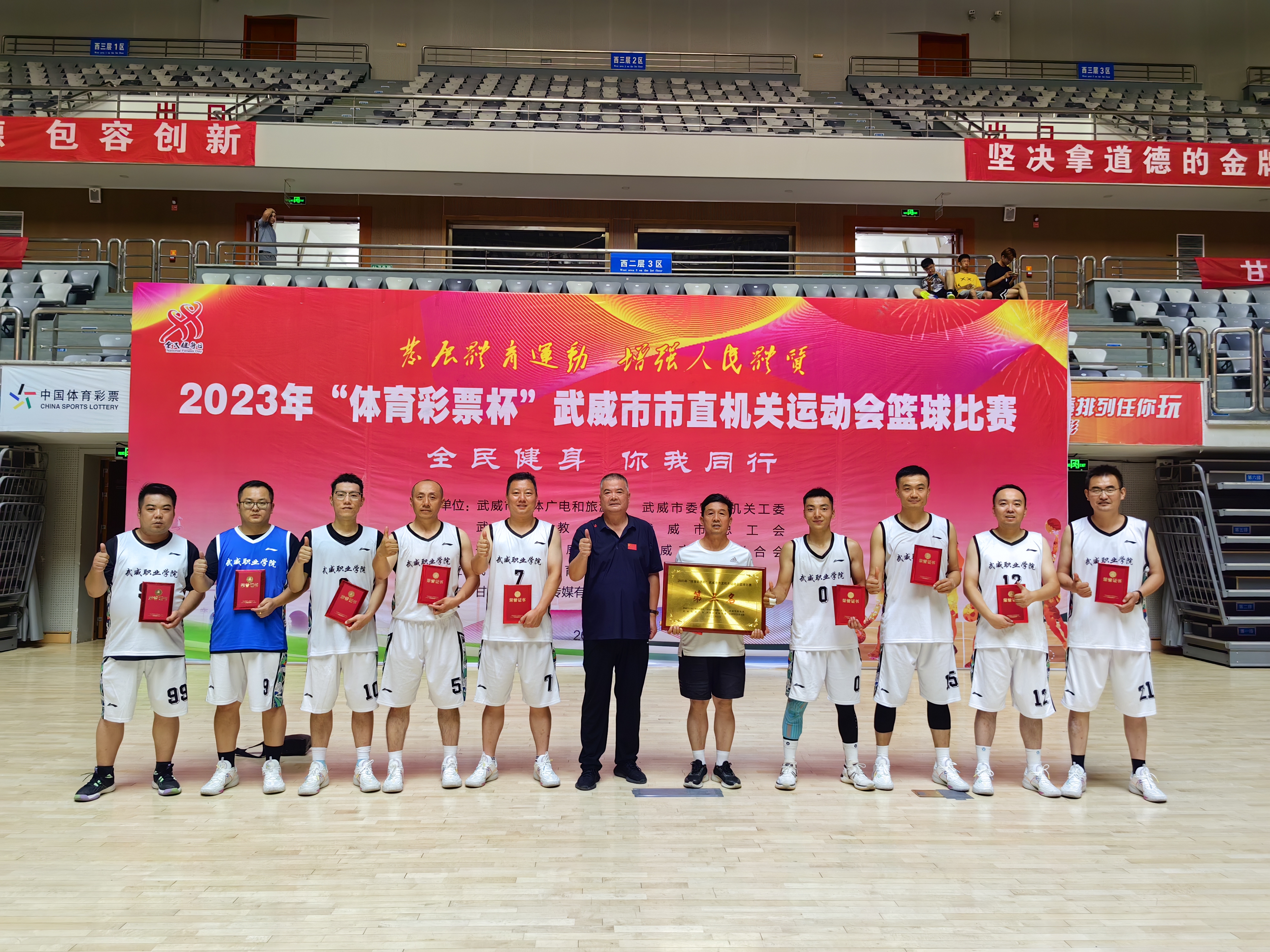 8月3日至8日,由市文體廣電旅游局、市委直屬機(jī)關(guān)工委、市總工會(huì)、市教育局、團(tuán)市委、市婦聯(lián)主辦,市體育中心承辦的2023年武威市市直機(jī)關(guān)運(yùn)動(dòng)會(huì)男子籃球比賽經(jīng)過(guò)五天的激烈拼搏,學(xué)校男子籃球代表隊(duì)獲得第三名。