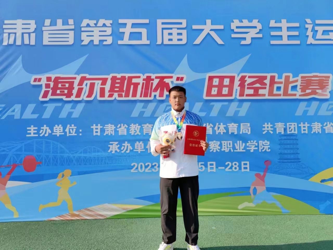 中科低碳新能源技術(shù)學(xué)院學(xué)子代表學(xué)校在甘肅省第五屆大學(xué)生運動會中喜獲佳績,其中馬高昆同學(xué)在田徑男子鐵餅丙組項目和田徑男子鉛球丙組項目比賽中獲得2枚金牌,剡國輝同學(xué)在田徑男子丙組鉛球項目比賽中獲得銀牌。