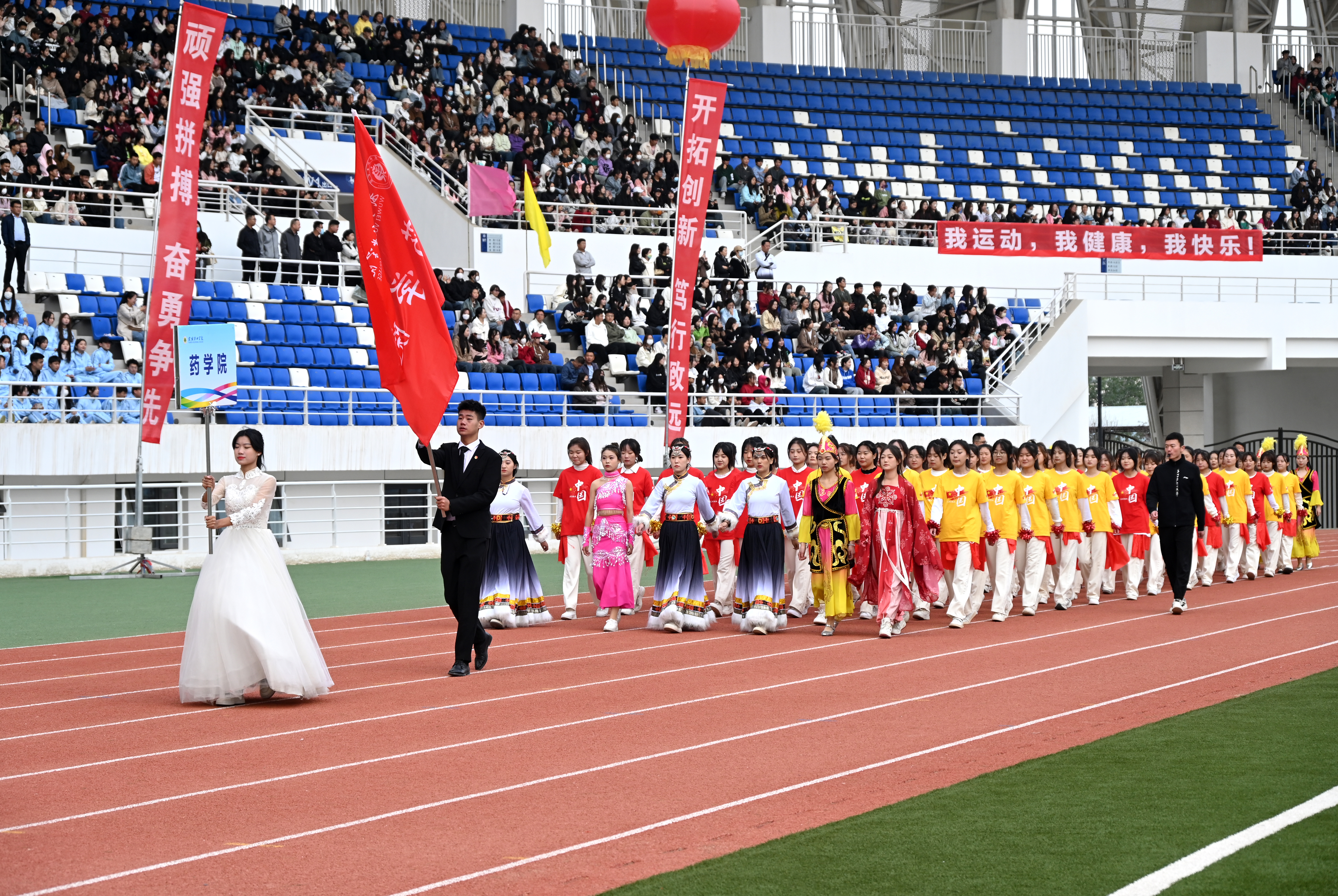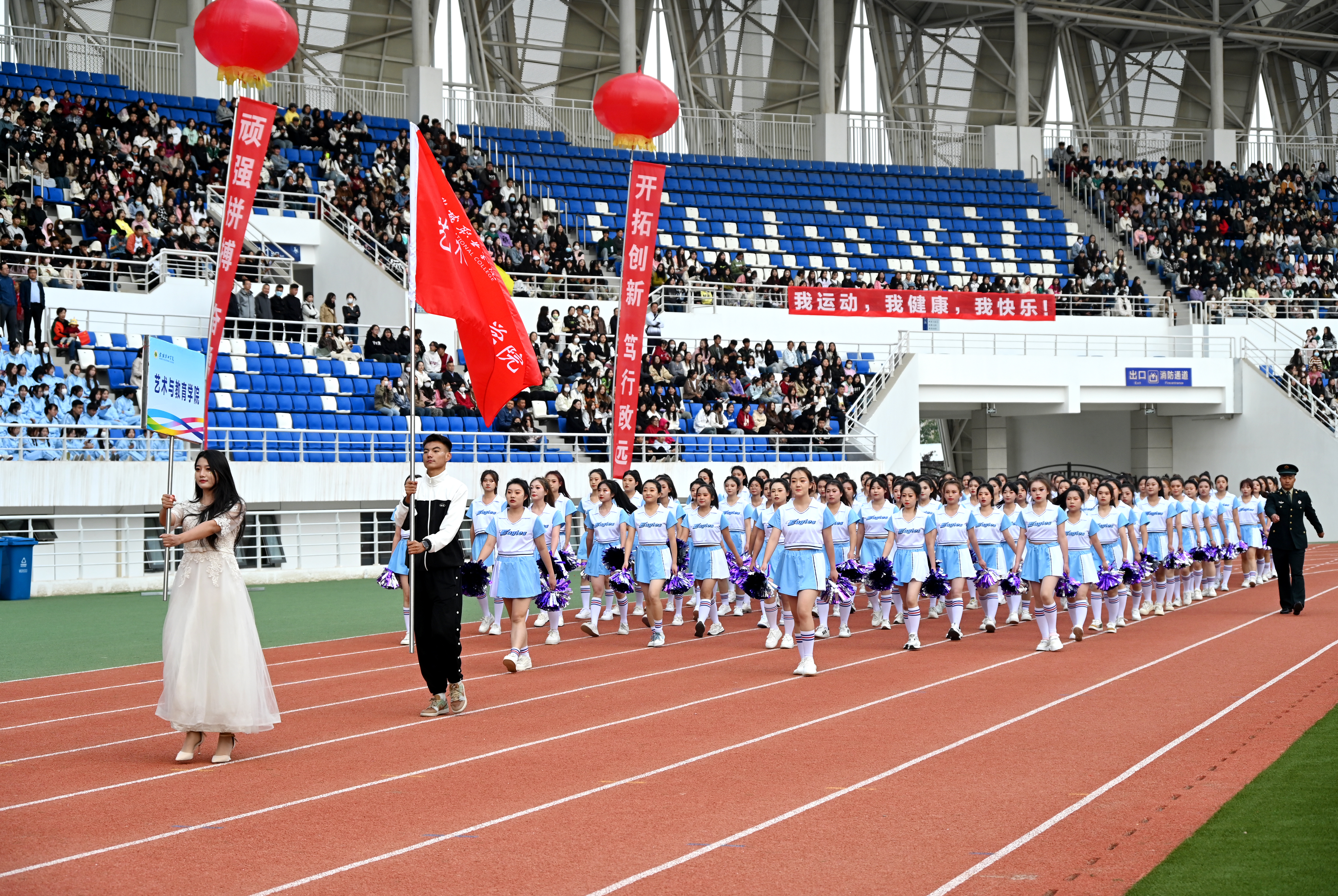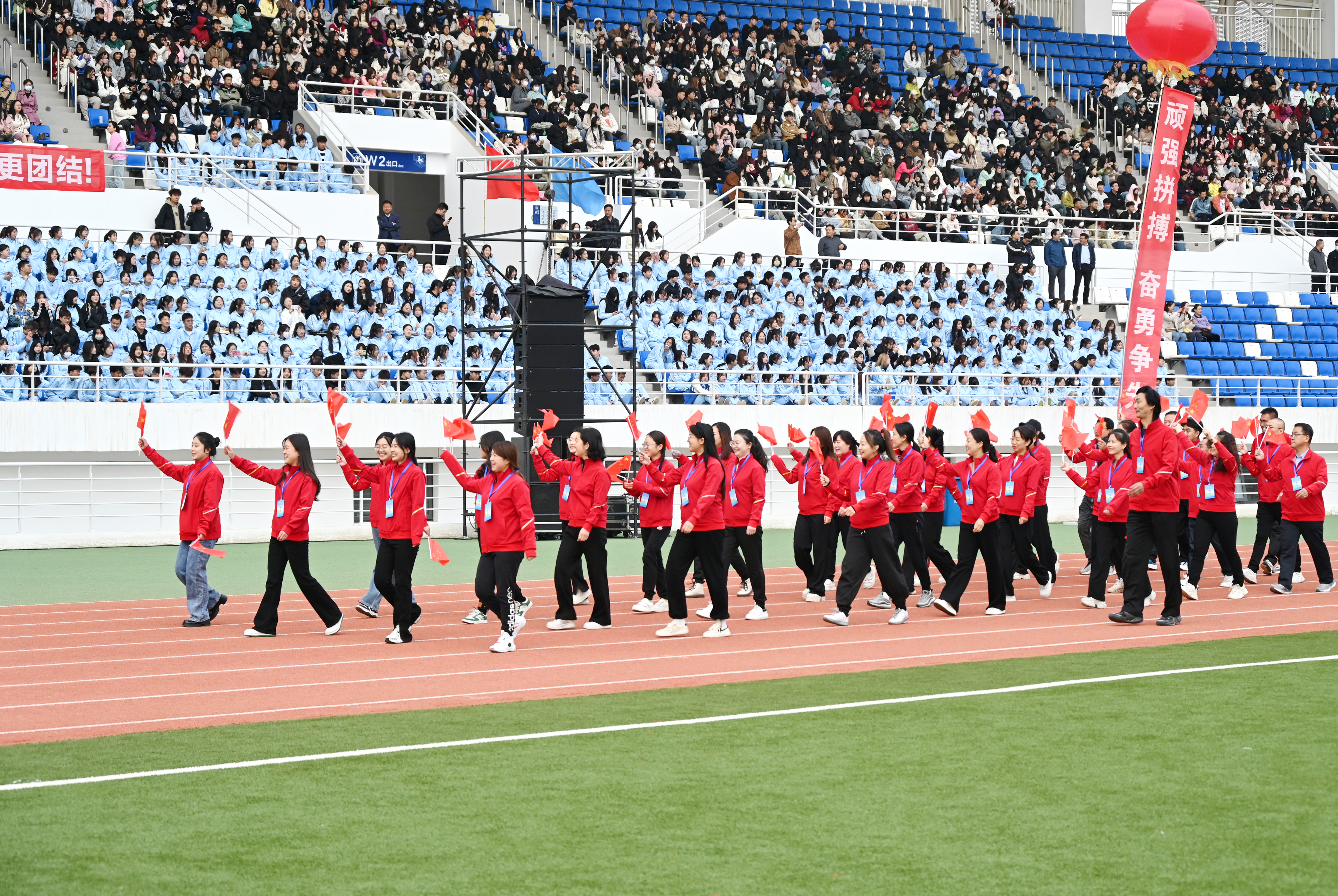 伴隨著雄壯激越的運(yùn)動(dòng)員進(jìn)行曲,國旗護(hù)衛(wèi)隊(duì)、彩旗隊(duì)、裁判員隊(duì)伍、各二級(jí)學(xué)院方陣依次入場(chǎng),隊(duì)列步伐整齊有力,口號(hào)堅(jiān)定嘹亮,充分展示了師生良好的精神風(fēng)貌。