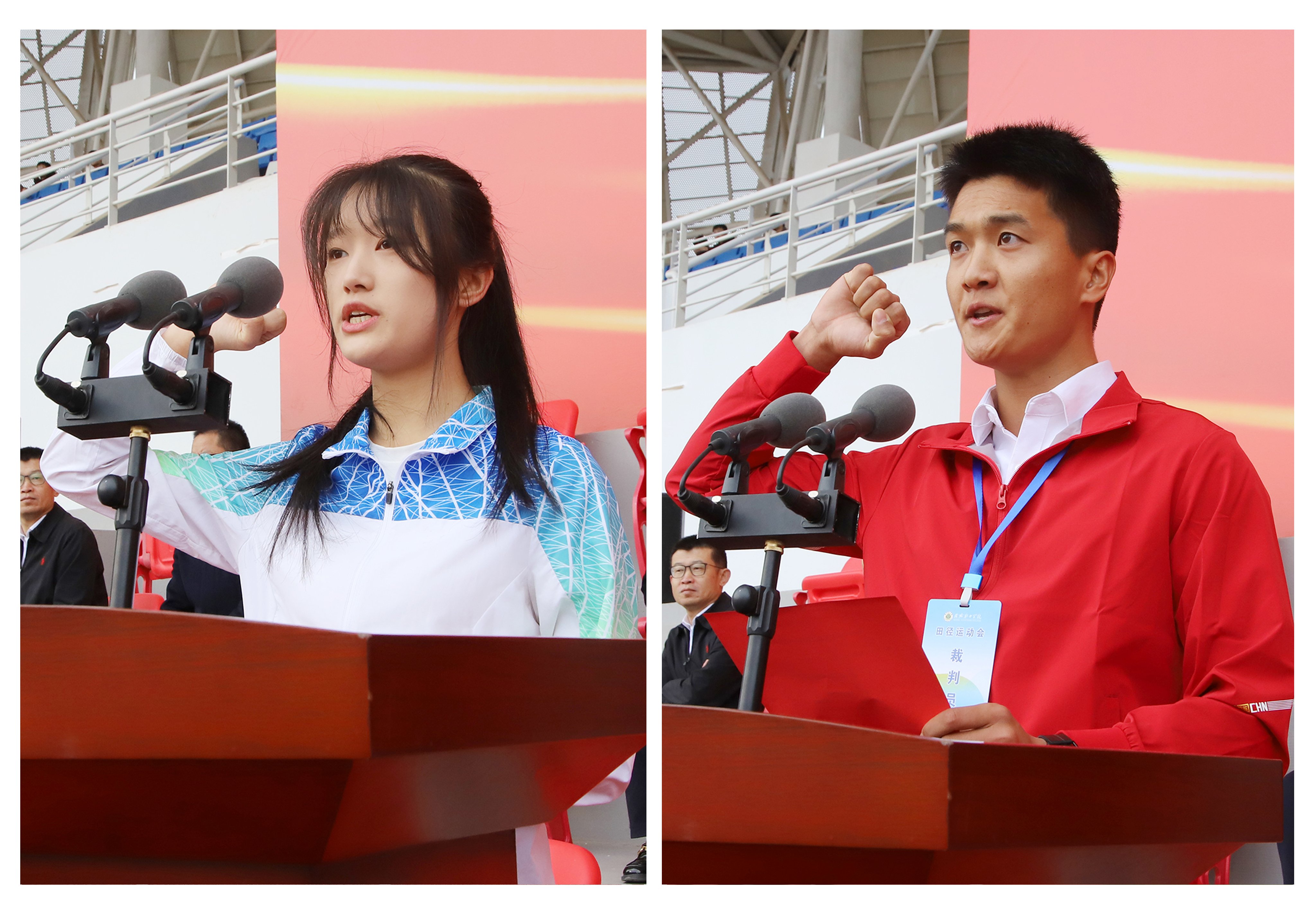 開幕式上,侯昊燁同學(xué)和吳績?nèi)鹄蠋煼謩e代表運(yùn)動(dòng)員和裁判員進(jìn)行了莊嚴(yán)的宣誓。