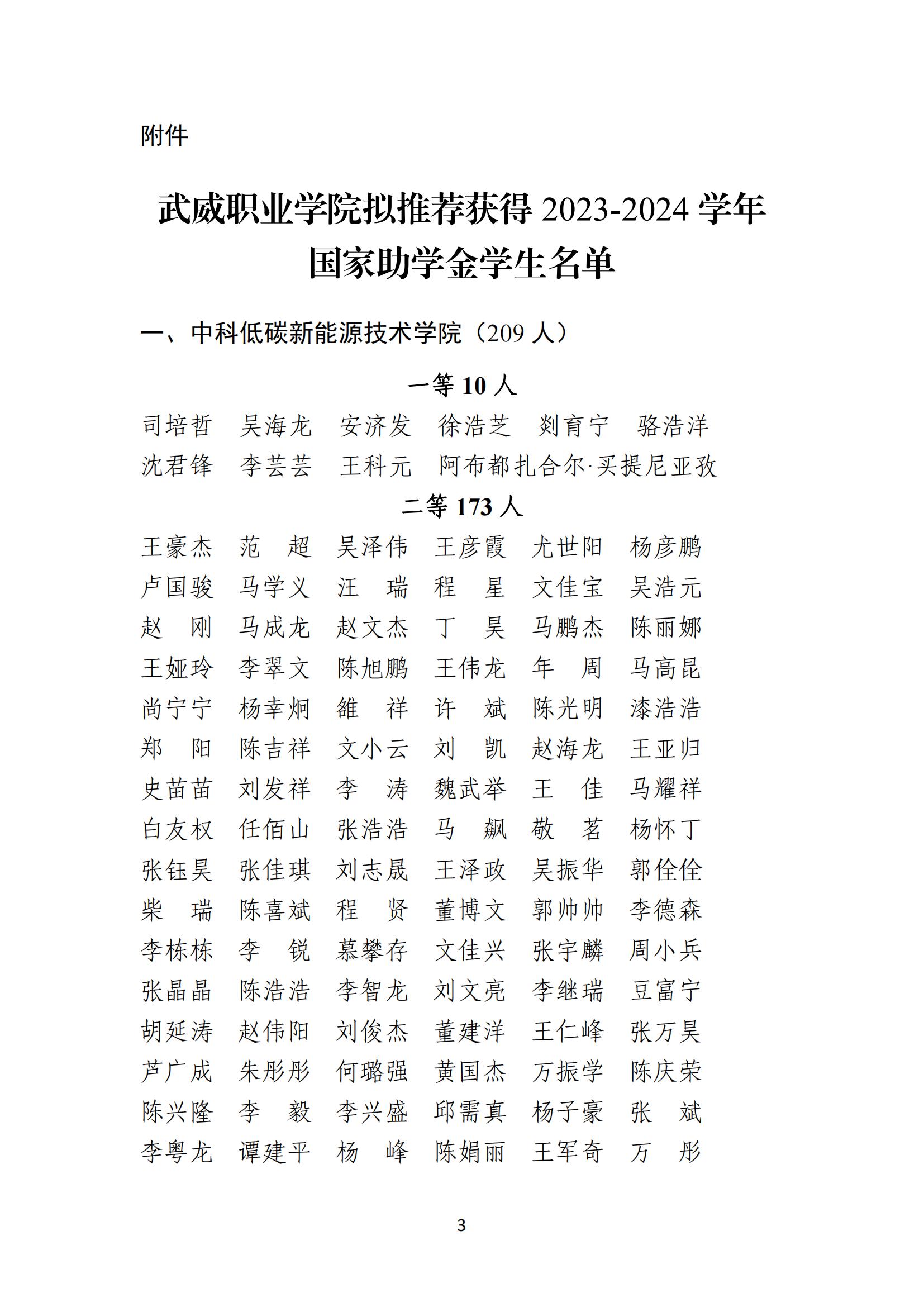 武威職業(yè)學(xué)院關(guān)于2023-2024學(xué)年國(guó)家助學(xué)金評(píng)選結(jié)果的公示