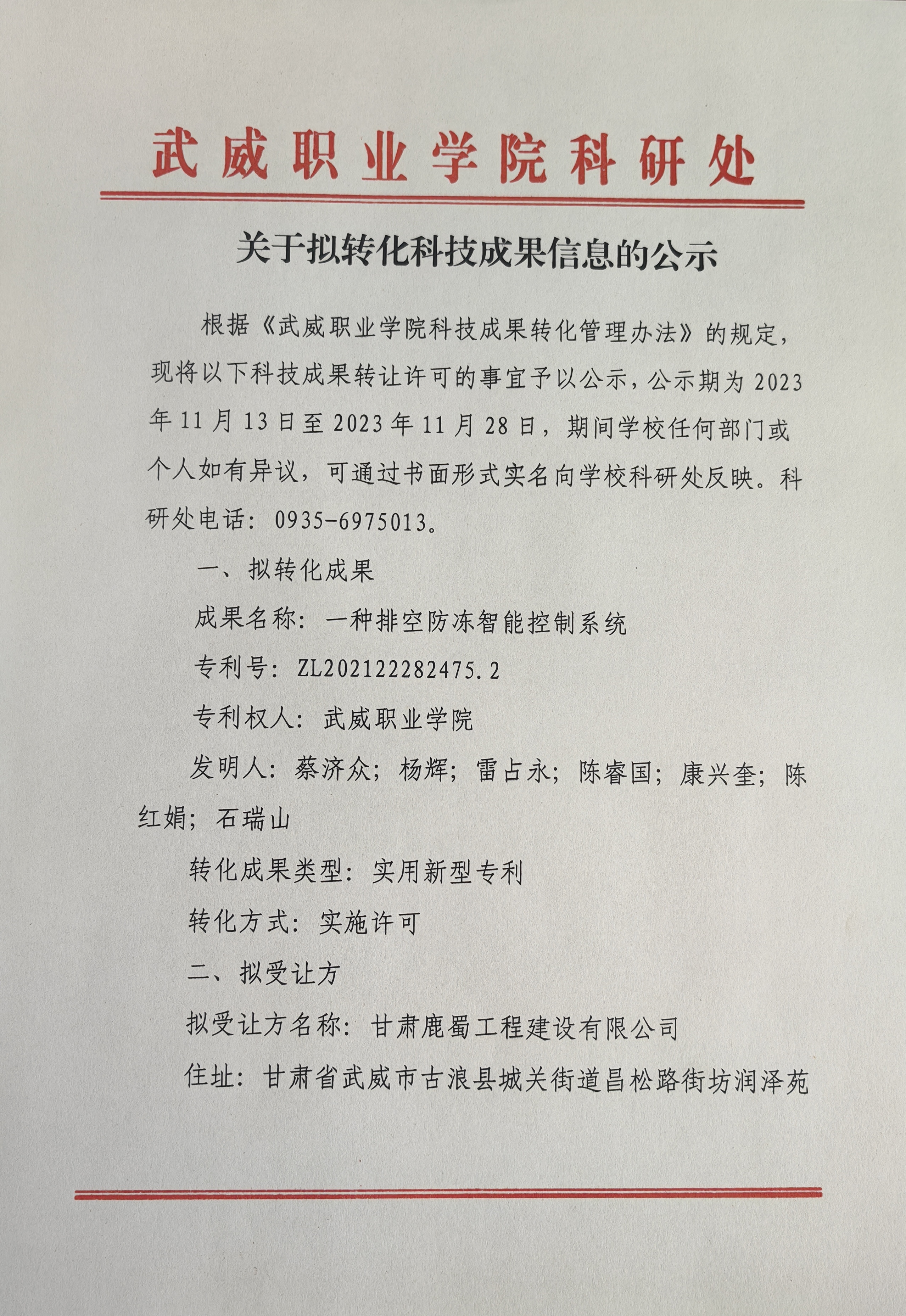 關于擬轉化科技成果信息的公示