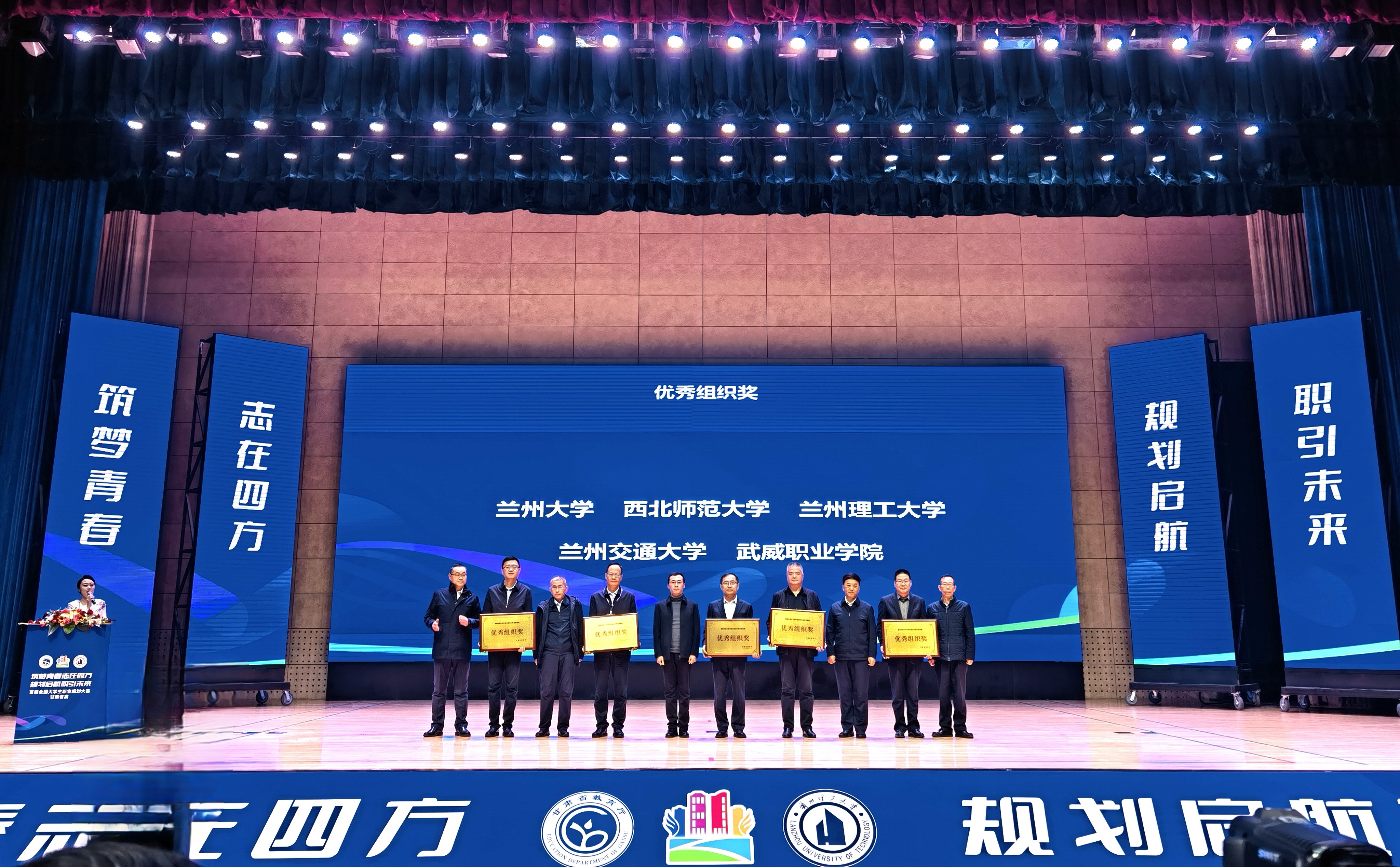 11月17日上午,“筑夢青春志在四方,規(guī)劃啟航職引未來”—首屆全國大學(xué)生職業(yè)規(guī)劃大賽甘肅省賽閉幕式暨頒獎儀式在蘭州理工大學(xué)體育館舉行。我校黨委委員、副校長王守云,招生就業(yè)處負(fù)責(zé)人董鵬帶隊參加閉幕式暨頒獎儀式。在職教組省級決賽中,兩個賽道分別設(shè)金獎5項,銀獎10項,銅獎15項。我校代表隊榮獲金獎2項、銀獎4項、銅獎4項,獲獎作品數(shù)目為全省第一。其中,經(jīng)濟(jì)管理學(xué)院2022級旅游管理專業(yè)學(xué)生顏汝榮獲成長賽道金獎第一名,并在閉幕式上作匯報展演。