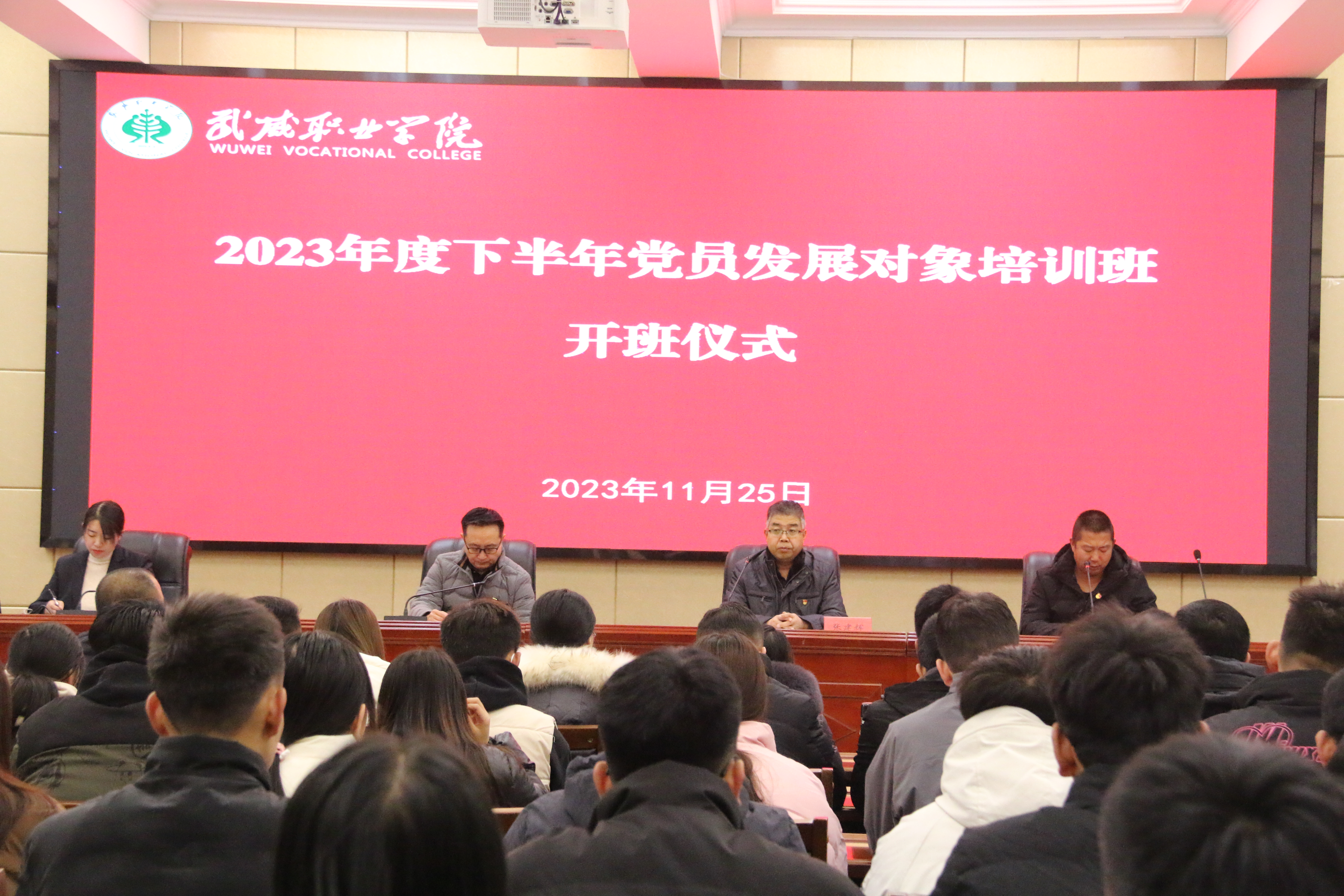為進(jìn)一步做好黨員發(fā)展工作,嚴(yán)把黨員入口關(guān),11月25日上午,學(xué)校2023年下半年黨員發(fā)展對象培訓(xùn)班開班典禮在行樹樓北側(cè)報(bào)告廳舉行,本次培訓(xùn)班由學(xué)校黨委黨校主辦,護(hù)理學(xué)院承辦。組織人事處負(fù)責(zé)人任陶、護(hù)理學(xué)院黨總支書記張建輝及各總支、直屬黨支部組織委員參加開班儀式,來自各基層黨組織的教師、學(xué)生共92名黨員發(fā)展對象參加本次培訓(xùn)。