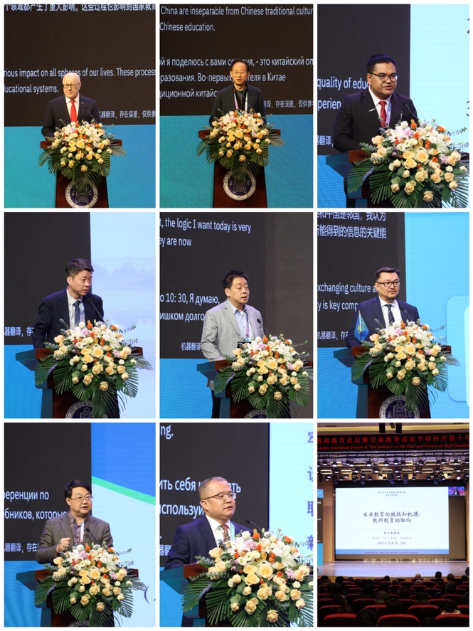 教育部國際合作與交流司副司長賈鵬線上致辭;甘肅省委教育工委書記、省教育廳廳長張國珍,省政府外事辦副主任趙軍出席并致辭;甘肅省委教育工委專職副書記鄭鈺出席;西北師范大學黨委書記賈寧出席開幕式并致辭,西北師大校長、黨委副書記王占仁主持開幕式。甘肅省教育廳,國(境)內(nèi)外院校相關(guān)機構(gòu)專家學者、省內(nèi)高校相關(guān)負責人及西北師范大學相關(guān)部門負責人和部分師生代表參加。學校黨委委員、副校長田迎春參加論壇。