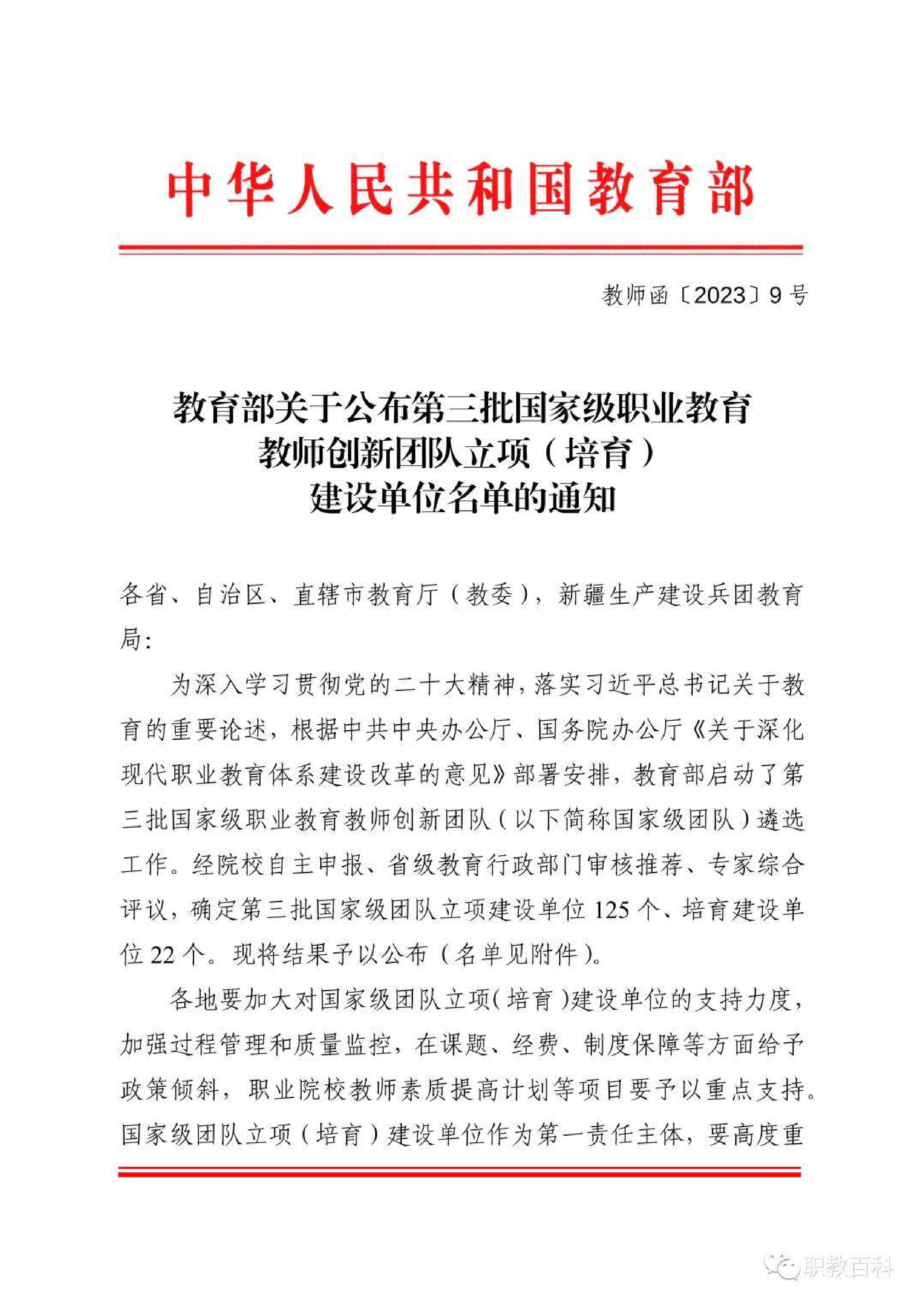近日,教育部公布了《教育部關(guān)于公布第三批國家級(jí)職業(yè)教育教師創(chuàng)新團(tuán)隊(duì)立項(xiàng)(培育)建設(shè)單位名單的通知》(教師函〔2023〕9號(hào)),學(xué)院黃述杰教授主持的“光伏工程技術(shù)”專業(yè)教師團(tuán)隊(duì)成功入選。這是學(xué)校首次入選國家級(jí)職業(yè)教育教師創(chuàng)新團(tuán)隊(duì)立項(xiàng)建設(shè)單位,實(shí)現(xiàn)了學(xué)校教學(xué)團(tuán)隊(duì)“國家級(jí)”項(xiàng)目零的突破,也是學(xué)?!半p高”項(xiàng)目建設(shè)和高質(zhì)量發(fā)展中取得的又一項(xiàng)國家級(jí)標(biāo)志性成果。