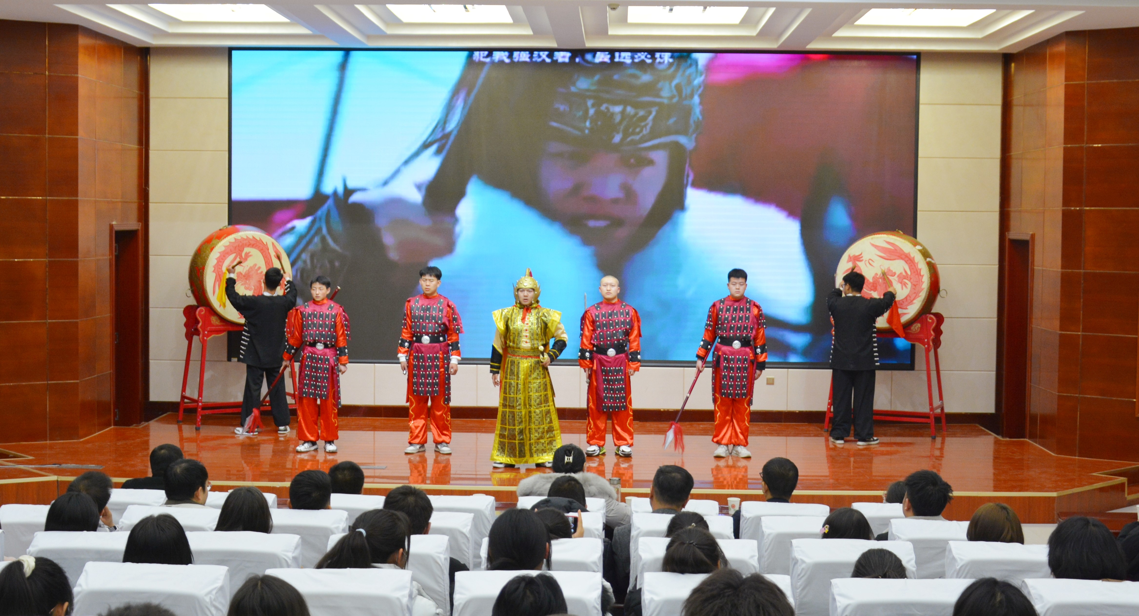 比賽現(xiàn)場精彩紛呈,現(xiàn)場氣氛異常熱烈,掌聲此起彼伏。節(jié)目以詩歌吟誦、伴舞、書法、國畫、武術、情景表演等豐富多彩的藝術形式,為現(xiàn)場觀眾打造出一場別開生面的涼州文化視聽盛宴。同學們激情洋溢,用澎湃真摯的情感演繹著經典燦爛的磅礴詩篇,用跨越千年的對話勾勒出雄渾壯烈的漢武雄風,用鏗鏘有力的旋律編織出蕩氣回腸的時代頌歌,以青春奮斗的初心賡續(xù)著生生不息的五涼文化。