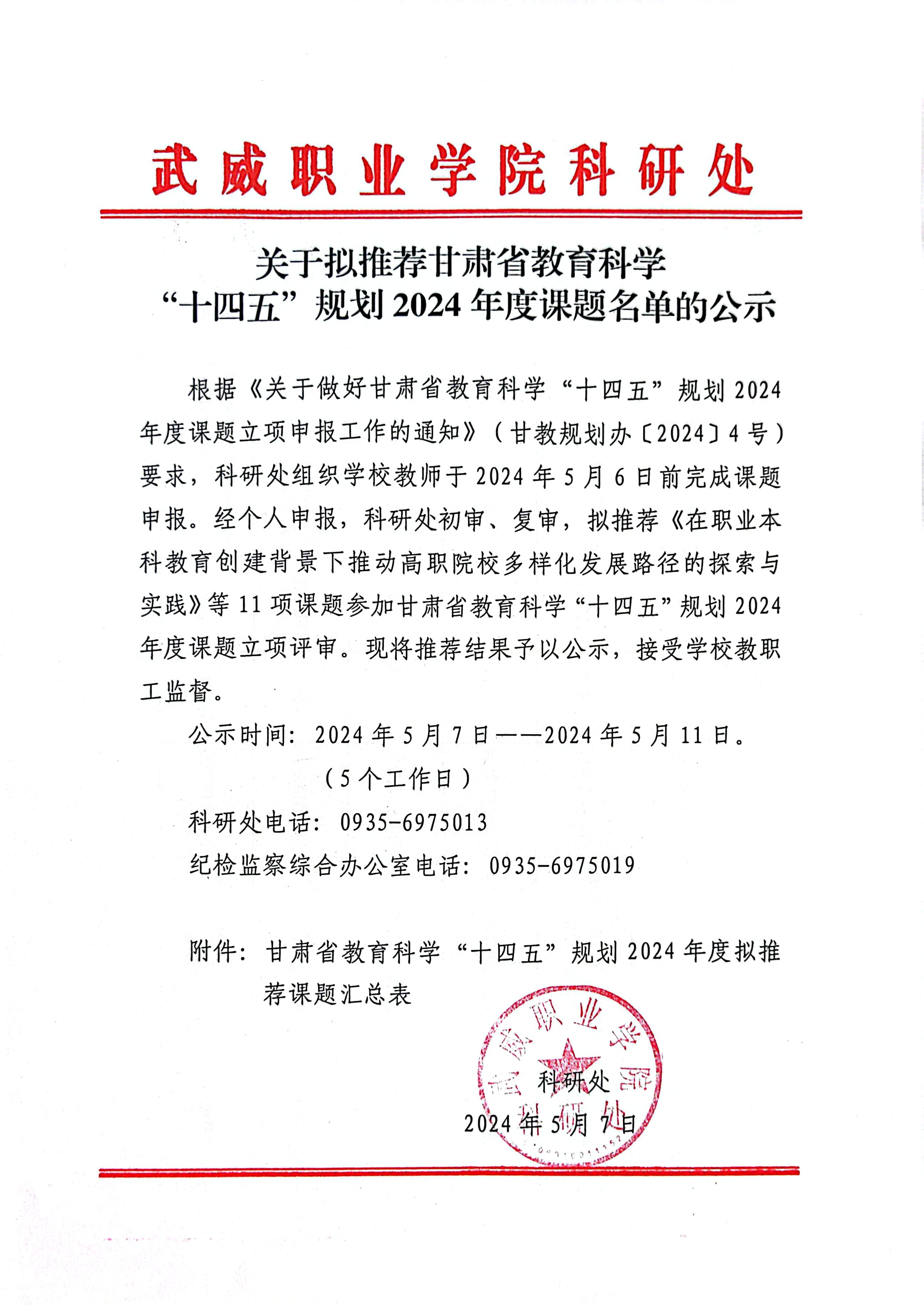 關于擬推薦甘肅省教育科學“十四五”規(guī)劃2024年度課題名單的公示