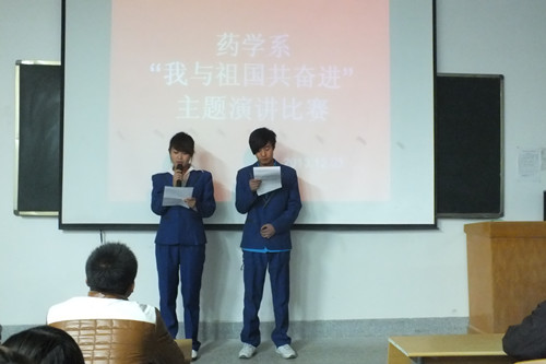 為了深入學(xué)習貫徹黨的十八大精神,引領(lǐng)廣大學(xué)生為實現(xiàn)國家富強、民族復(fù)興、人民幸福的偉大“中國夢”而奮發(fā)學(xué)習、努力奮斗,藥學(xué)系于2013年12月3日組織全體師生開展了以“我與祖國共奮進”為主題的演講比賽。